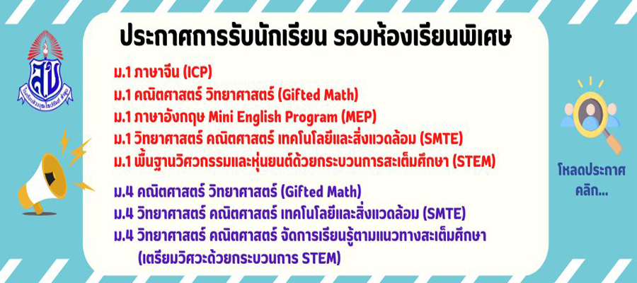 ประกาศการรับนักเรียน รอบห้องเรียนพิเศษ ปีการศึกษา 2569