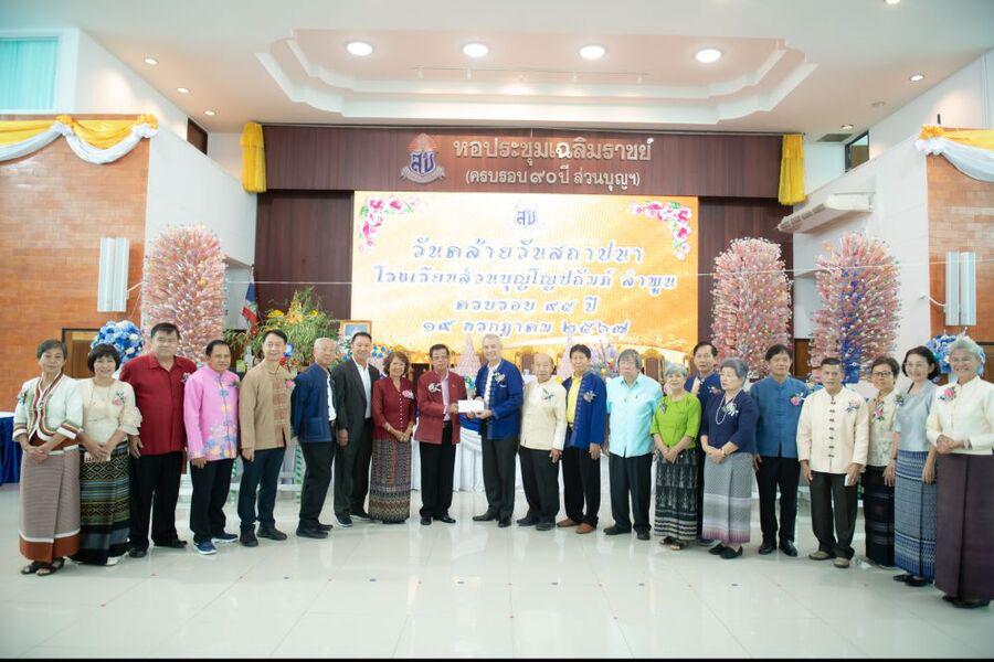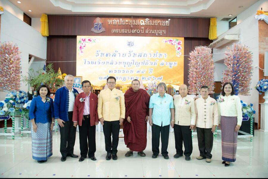 19 กรกฎาคม 2567 นายธีระศักดิ์ แก้วสุข ผู้อำนวยการโรงเรียนส่วนบุญโญปถัมภ์ ลำพูน พร้อมด้วยผู้บริหารโรงเรียน ครูและบุคลากรทางการศึกษาและนักเรียนโรงเรียนส่วนบุญโญปถัมภ์ ลำพูน ได้ต้อนรับท่านผู้มีเกียรติจากภาคีเครือข่ายโรงเรียน หน่วยงานและองค์กร เข้าร่วมพิธีทำบุญเจริญพระพุทธมนต์ สืบชะตา พิธีทอดผ้าป่าสามัคคี เพื่อพัฒนาคุณภาพการศึกษา พิธีมอบโล่และเกียรติบัตรยกย่องเชิดชูเกียรติให้แก่ครู และมอบทุนการศึกษาให้แก่นักเรียน โดยได้รับความเมตตาจากพระเดชพระคุณพระเทพรัตนนายก เจ้าคณะจังหวัดลำพูน เจ้าอาวาสวัดพระธาตุหริภุญชัย วรมหาวิหาร เป็นประธานสงฆ์ นายโยธิน ประสงค์ความดี รองผู้ว่าราชการจังหวัดลำพูน ให้เกียรติเป็นประธานในพิธี และพลอากาศตรีเจ้าวัฒนัน ณ ลำพูน ทายาทพลตรีอำมาตย์โทเจ้าจักรคำขจรศักดิ์ ให้เกียรติเข้าร่วมพิธี ณ หอประชุมเฉลิมราชย์ โรงเรียนส่วนบุญโญปถัมภ์ ลำพูน S:0