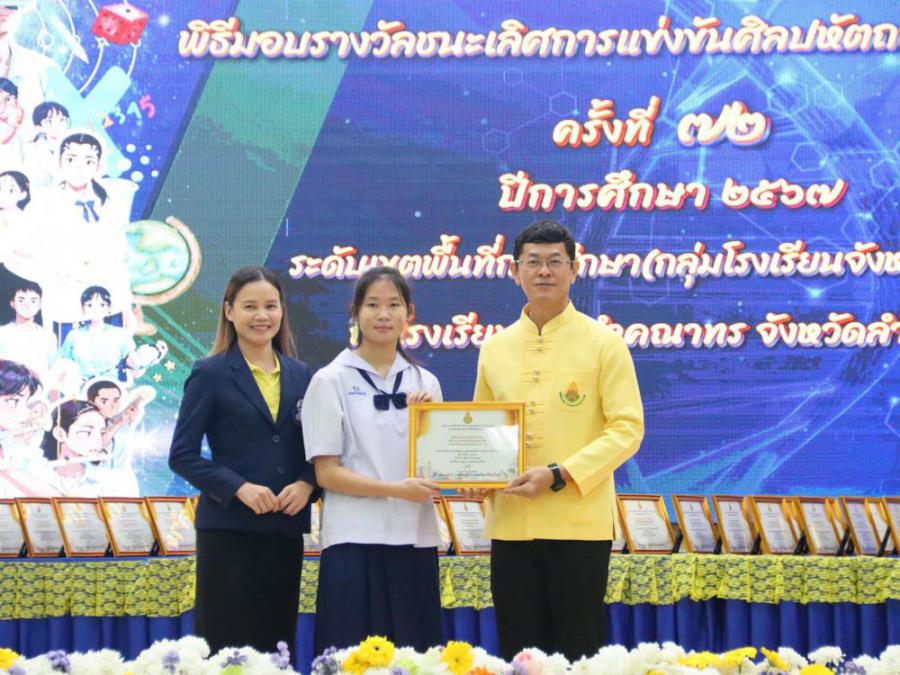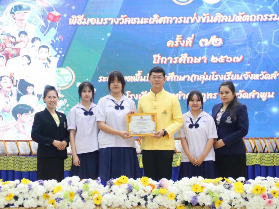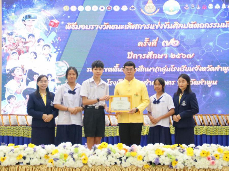 พิธีมอบรางวัลคณะครูและนักเรียนที่ได้รับรางวัล ชนะเลิศการแข่งขันทักษะ ในงานศิลปหัตถกรรมนักเรียน ระดับเขตพื้นที่การศึกษา ครั้งที่ 72 ประจำปีการศึกษา 2567