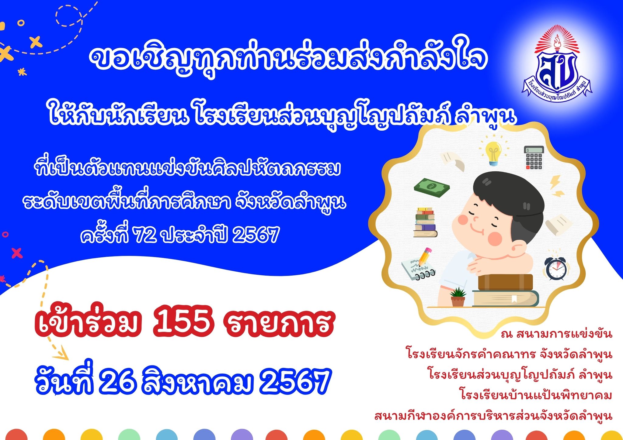 งานศิลปหัตถกรรม ระดับเขตพื้นที่การศึกษา จังหวัดลำพูน ครั้งที่ 72 ประจำปี 2567 สนามแข่งขันโรงเรียนส่วนบุญโญปถัมภ์ ลำพูน