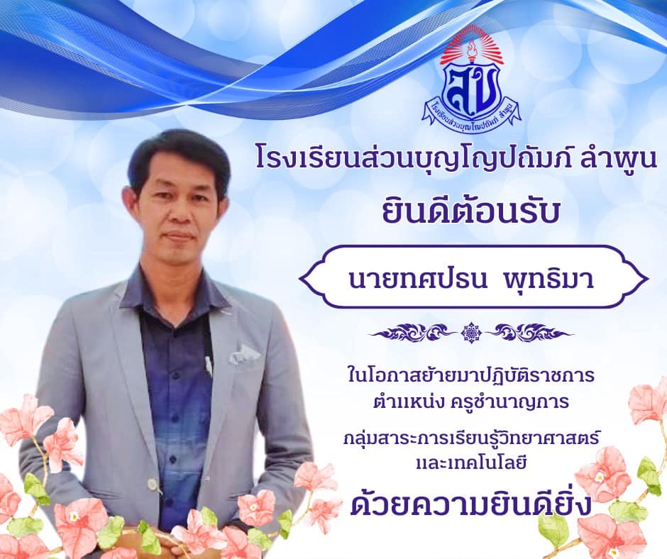 โรงเรียนส่วนบุญโญปถัมภ์ลำพูน ยินดีต้อนรับ นายทศปธน พุทธิมา จากโรงเรียนอุโมงวิทยาคม จ.ลำพูน