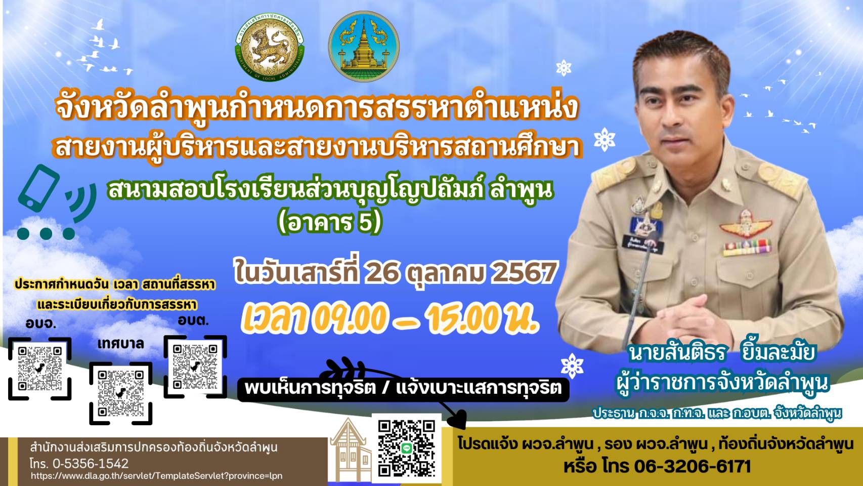 สนามสอบ การสรรหาตำแหน่งสายงานผู้บริหารและสายงานบริหารสถานศึกษาที่ว่างขององค์การบริหารส่วนจังหวัด เทศบาล และองค์การบริหารส่วนตำบลของจังหวัดลำพูน
