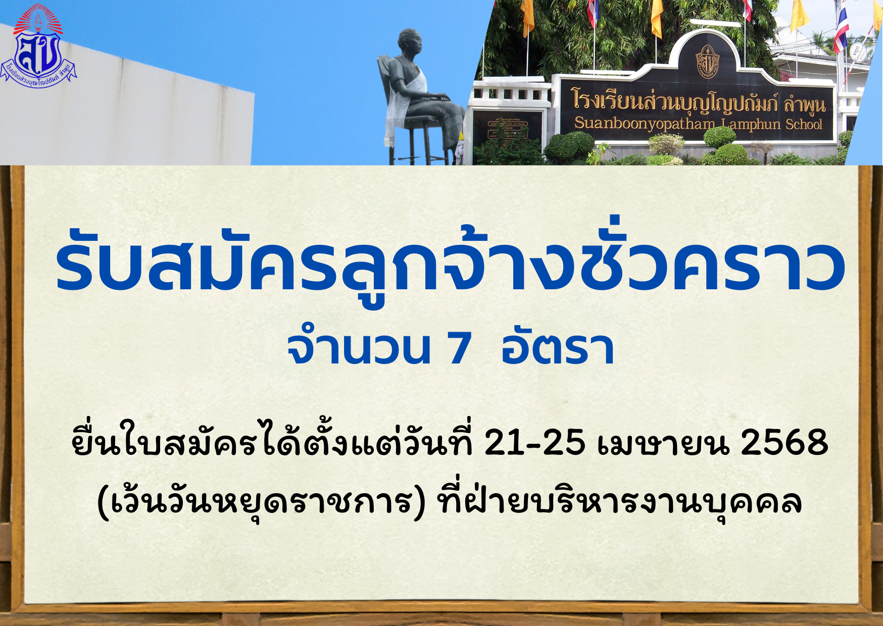 ประกาศรับสมัครบุคคลเพื่อคัดเลือกเป็นลูกจ้างชั่วคราว จำนวน 7 อัตรา