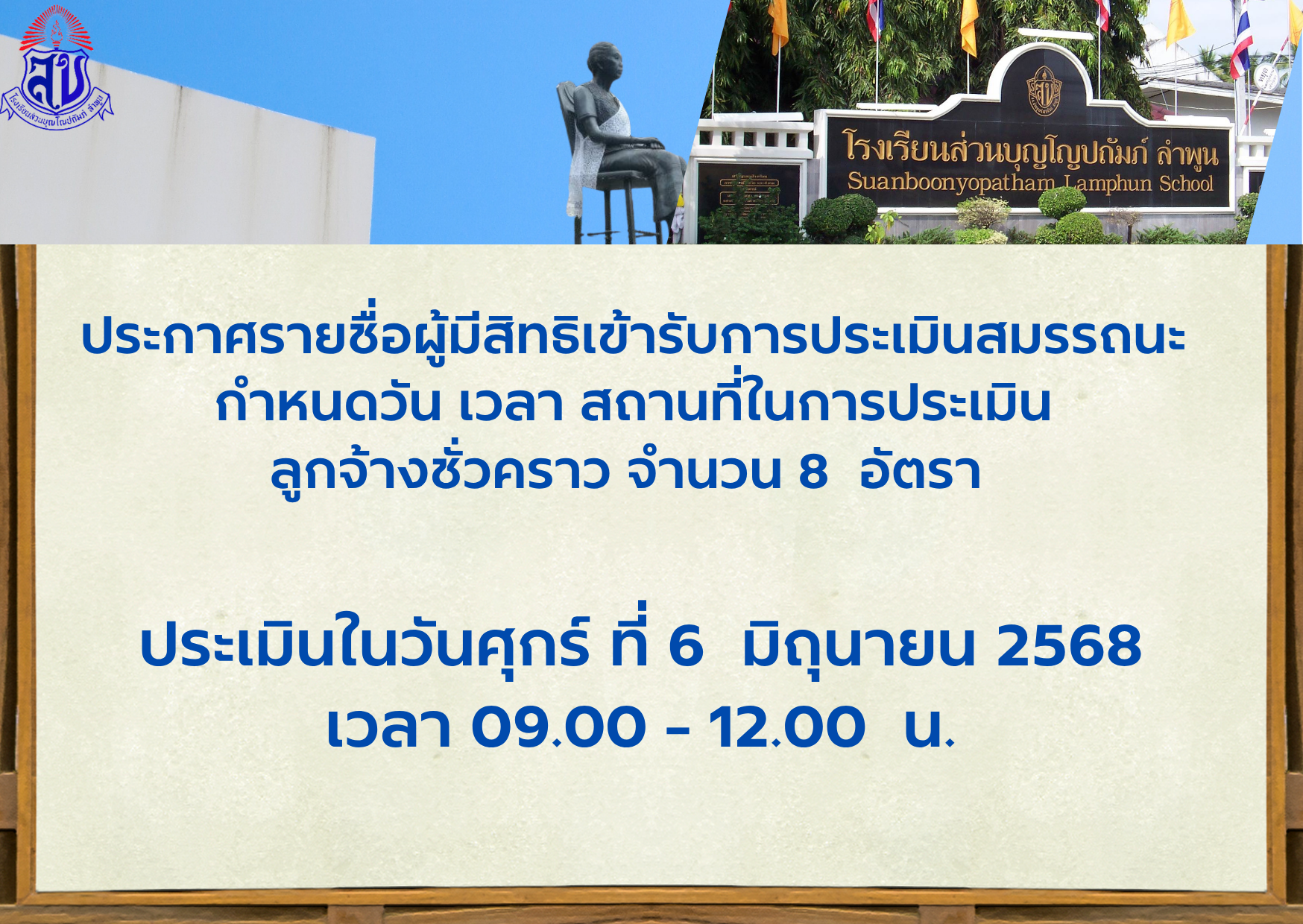 ประกาศรายชื่อผู้มีสิทธิเข้ารับการประเมินสมรรถนะ กำหนด วัน เวลา สถานที่ในการประเมินสมรรถนะ