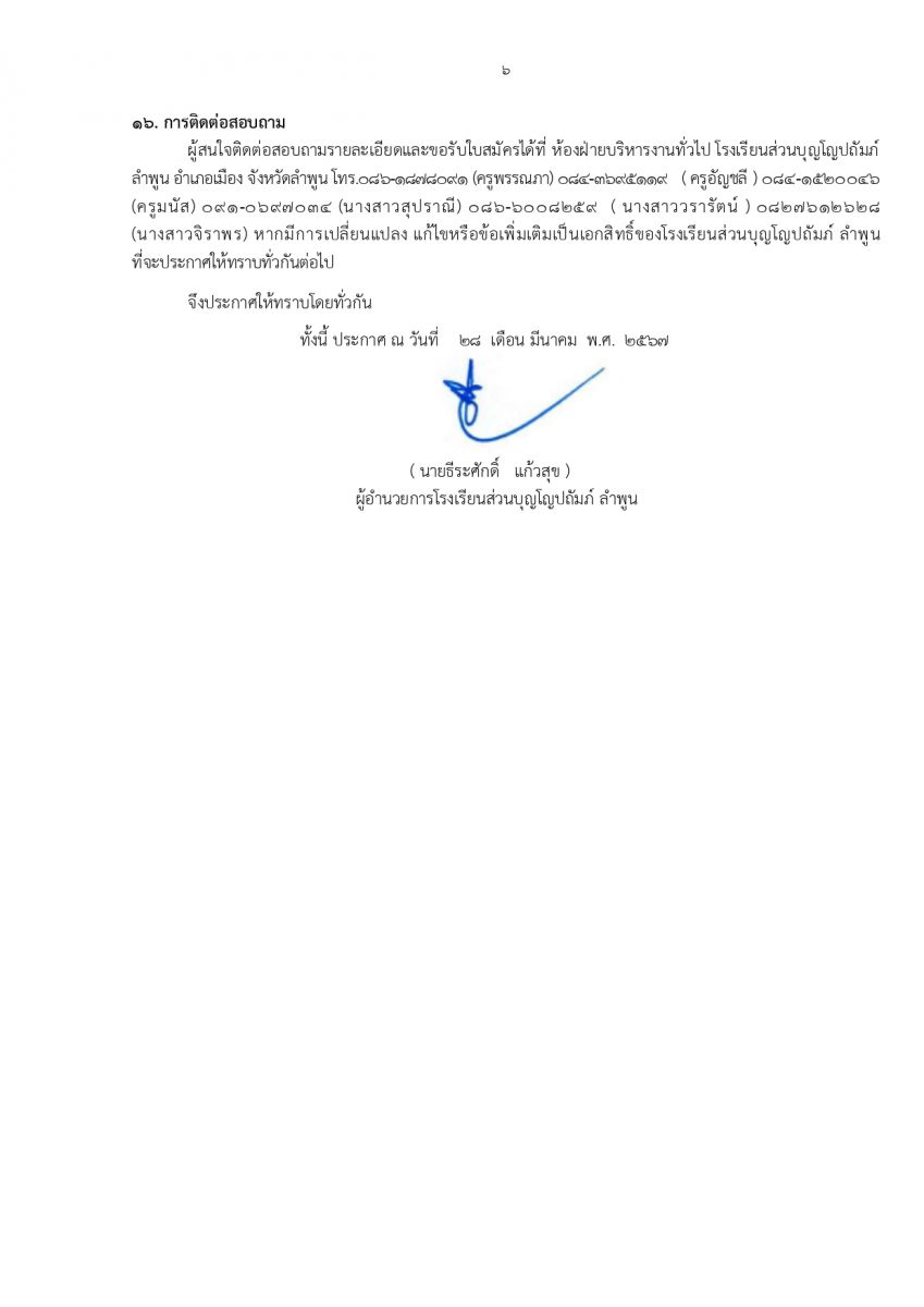 โรงเรียนส่วนบุญโญปถัมภ์ ลำพูน