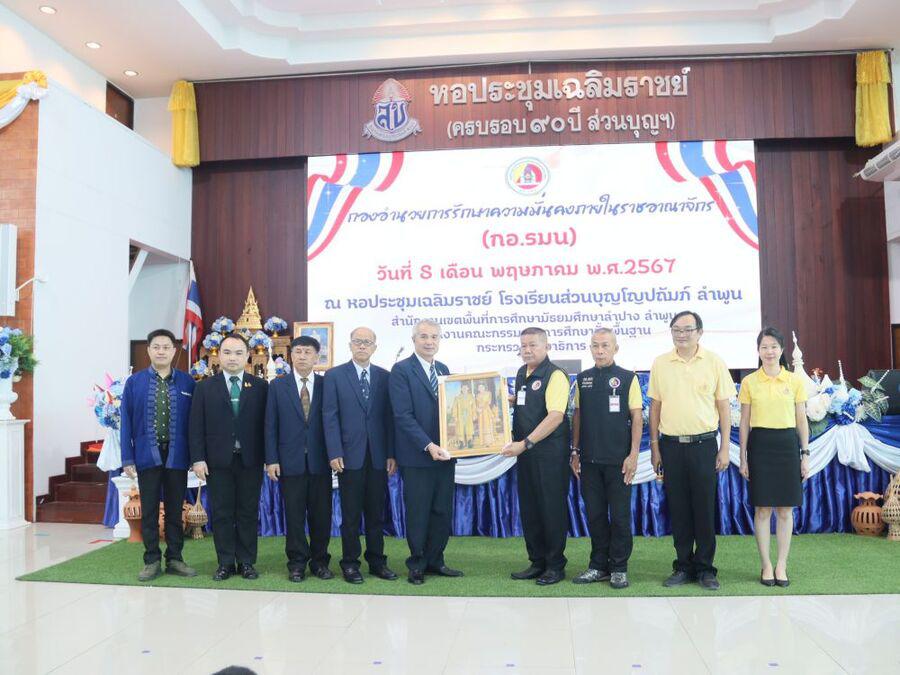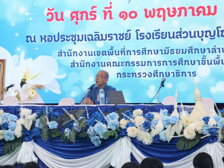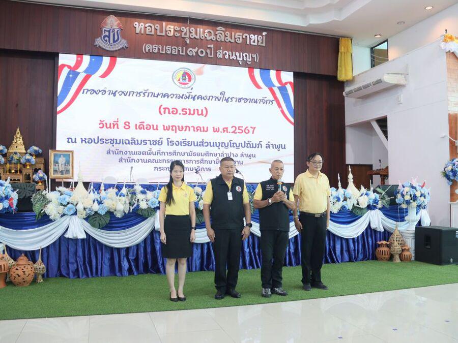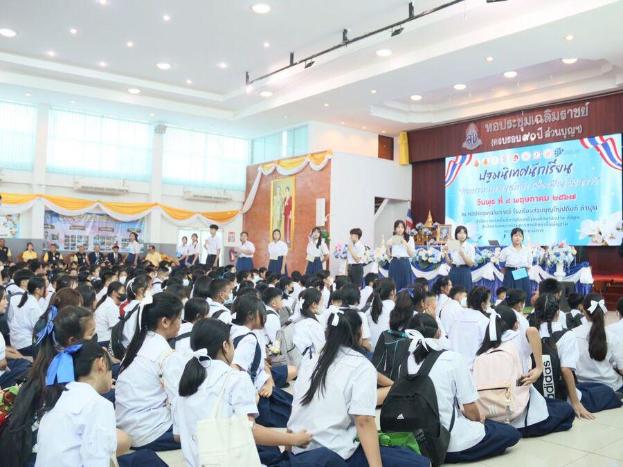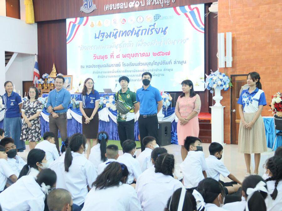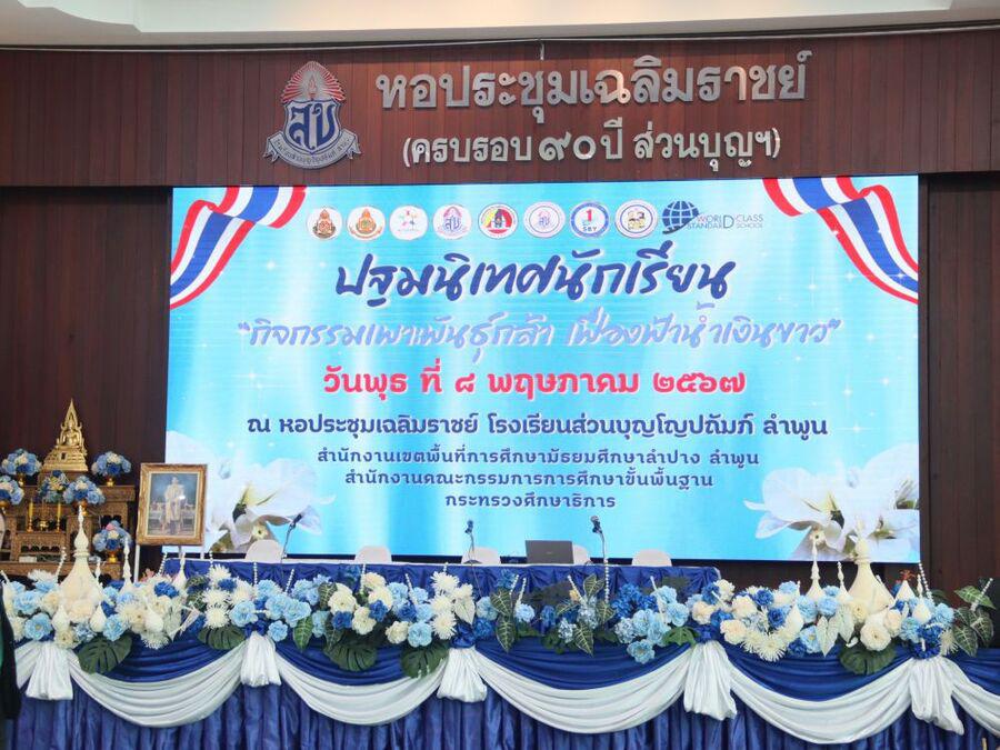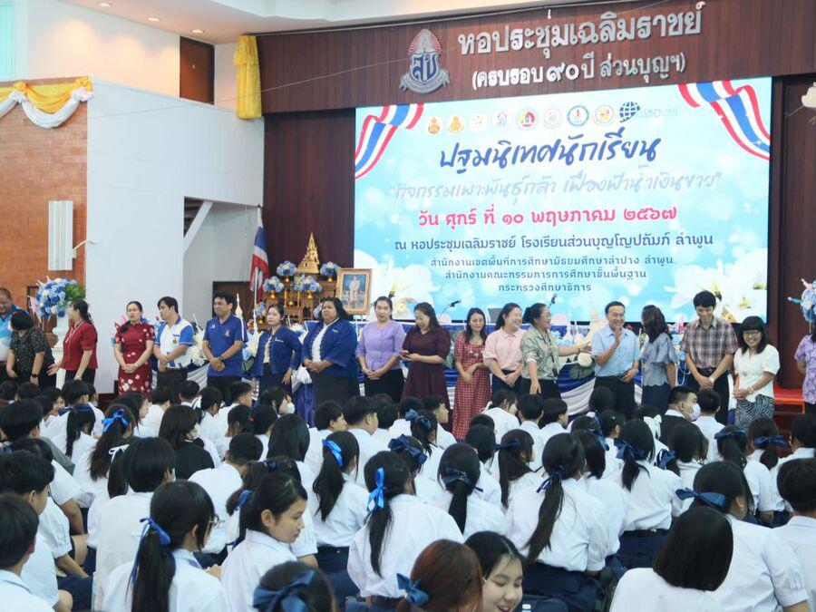 โญปถัมภ์ ลำพูน ให้เกียรติเป็นประธานในพิธีเปิดกิจกรรมปฐมนิเทศนักเรียน ปีการศึกษา 2567 ชั้นมัธยมศึกษาปีที่ 1 และชั้นมัธยมศึกษาปีที่ 4 และได้กล่าวให้โอวาทแก่นักเรียน ในครั้งนี้ได้มีวิทยากรจากกองอำนวยการรักษาความมั่นคงภายในราชอาณาจักร(กอ.รมน.)ลำพูน มาให้ความรู้แก่นักเรียน กิจกรรมในครั้งนี้ จัดขึ้นเพื่อให้นักเรียนได้รับทราบนโยบาย แนวทางปฏิบัติตัว กฏระเบียบต่างๆของทางโรงเรียน รู้จักอาคารสถานที่ พบครูที่ปรึกษา และสร้างความสัมพันธ์ระหว่างเพื่อนได้อย่างเหมาะสม ซึ่งจะเป็นประโยชน์ต่อนักเรียนในการใช้ชีวิตในโรงเรียนได้อย่างมีความสุขและประสบผลสำเร็จ ณ หอประชุมเฉลิมราชย์ โรงเรียนส่วนบุญโญปถัมภ์ ลำพูน S:0