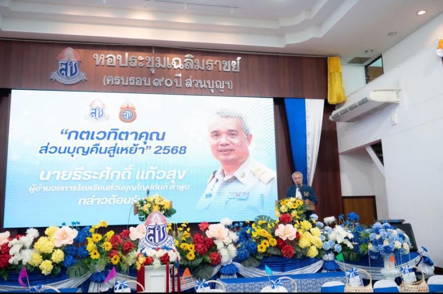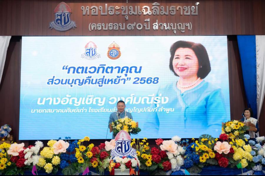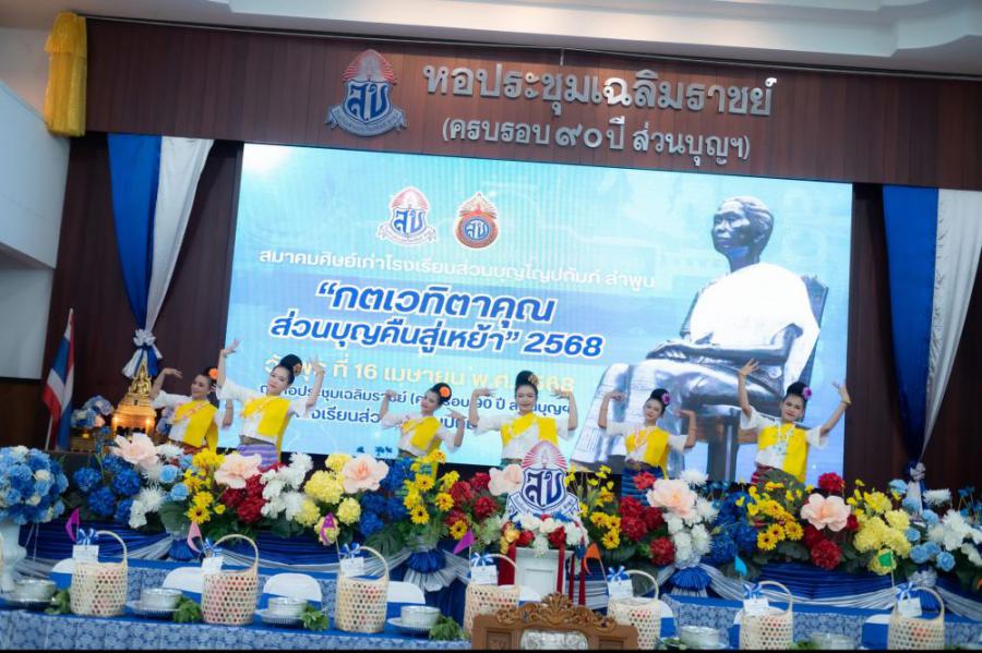 ????????สมาคมศิษย์เก่าโรงเรียนส่วนบุญโญปถัมภ์ ลำพูน จัดงานกตเวทิตาคุณส่วนบุญคืนสู่เหย้า ประจำ 2568 แสดงความกตัญญูกตเวทิตาต่อครูบาอาจารย์อาวุโส และการรวมพลังของศิษย์เก่าชาวส่วนบุญน้ำเงิน-ขาว ลำพูน???????? ????วันที่ 16 เมษายน พ.ศ.2568 ที่ผ่านมา นางอัญเชิญ วงศ์มณีรุ่ง นายกสมาคมศิษย์เก่าโรงเรียนส่วนบุญโญปถัมภ์ ลำพูน คณะกรรมการสมาคมศิษย์เก่าโรงเรียนส่วนบุญโญปถัมภ์ ลำพูน นายธีระศักดิ์ แก้วสุข ผู้อำนวยการโรงเรียนส่วนบุญโญถัมภ์ ลำพูน พร้อมคณะผู้บริหารและคณะครูโรงเรียนส่วนบุญโญปถัมภ์ ลำพูน จัดงาน กตเวทิตาคุณส่วนบุญคืนสู่เหย้า ประจำปี 2568 ณ หอประชุมเฉลิมราชย์ ครบรอบ 90 ปี ส่วนบุญ โรงเรียนส่วนบุญโญปถัมภ์ ลำพูน โดยได้รับเกียรติจาก นายวิวัฒน์ อินทร์ไทยวงศ์ ผู้ว่าราชการจังหวัดลำพูน เป็นประธานในพิธีเปิดงาน โดยมีคณะครูอาวุโส ศิษย์เก่า และแขกผู้มีเกียรติเข้าร่วมงานเป็นจำนวนมาก ????ภายในงานจัดให้มีกิจกรรมพิธีบวงสรวงเจ้าหญิงส่วนบุญ ชายาในเจ้าจักรคำขจรศักดิ์ เจ้าผู้ครองนครลำพูนองค์ที่ 10 , นิทรรศการในวาระครบรอบ 96 ปี วันสถาปนาโรงเรียนส่วนบุญโญปถัมภ์ ลำพูน #จากวันวานสู่วันนี้96ปีโรงเรียนส่วนบุญโญปถัมภ์ลำพูน , พิธีทำบุญทอดผ้าป่าเพื่อจัดหาทุนการศึกษามอบให้กับนักเรียนโรงเรียนส่วนบุญโญปถัมภ์ ลำพูน , พิธีเชิดชูเกียรติศิษย์เก่าดีเด่น ประจำปี 2568 จำนวน 10 ท่าน , พิธีสระเกล้าดำหัวครูอาวุโสโรงเรียนส่วนบุญโญปถัมภ์ ลำพูน , พิธีมอบทุนการศึกษาจากศิษย์เก่าในแต่ละรุ่น และกิจกรรมภาคความบันเทิงจากศิษย์เก่า การจัดงานดังกล่าวจัดขึ้นเพื่อแสดงความกตัญญูกตเวทิตาคุณต่อบูรพาจารย์ครูอาวุโสของโรงเรียน การขอพรเพื่อความเป็นสิริมงคล และสืบสานประเพณีวัฒนธรรมอันดีงามในช่วงเทศกาลสงกรานต์ ซึ่งจัดขึ้นเป็นประจำทุกปี พร้อมกันนี้ยังเป็นการรวมพลังของศิษย์เก่าชาวน้ำเงินขาว โรงเรียนส่วนบุญโญปถัมภ์ ลำพูน ที่เข้ามาร่วมงานกันอีกด้วย #สมาคมศิษย์เก่าโรงเรียนส่วนบุญโญปถัมภ์ลำพูน S:0