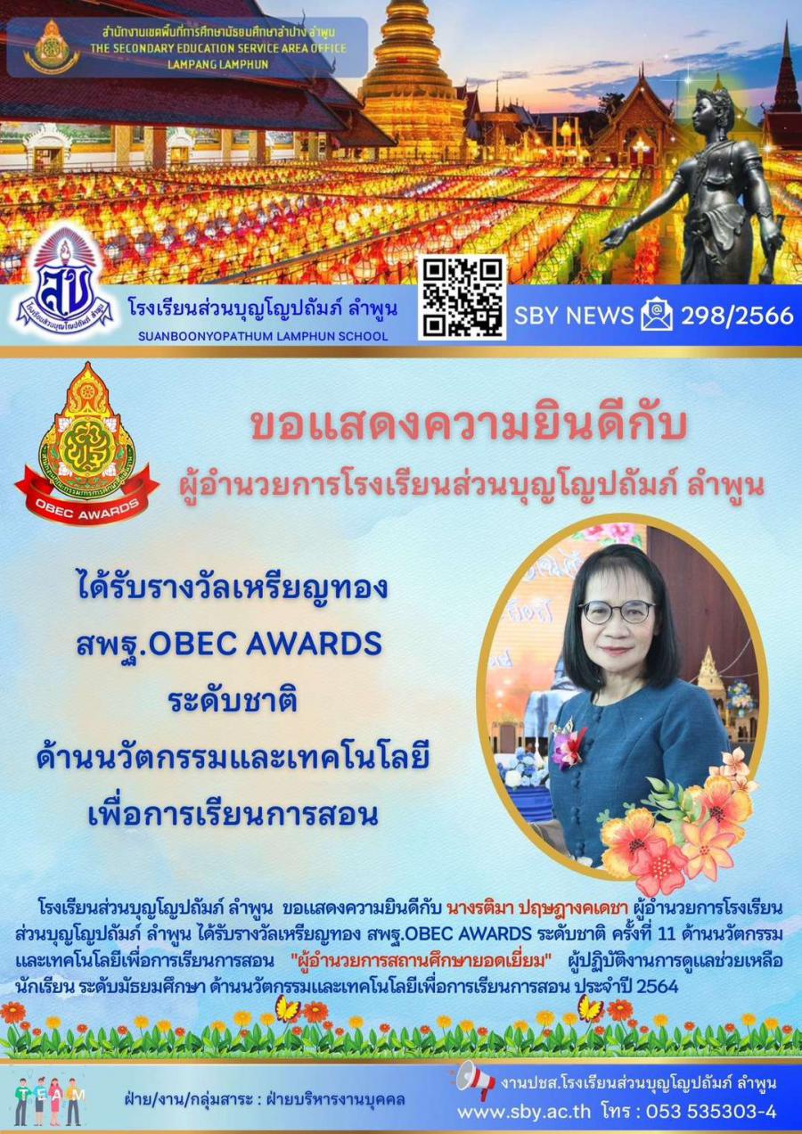 ผู้อำนวยการรับรางวัลเหรียญทอง สพฐ.OBEC AWARDS ระดับชาติ