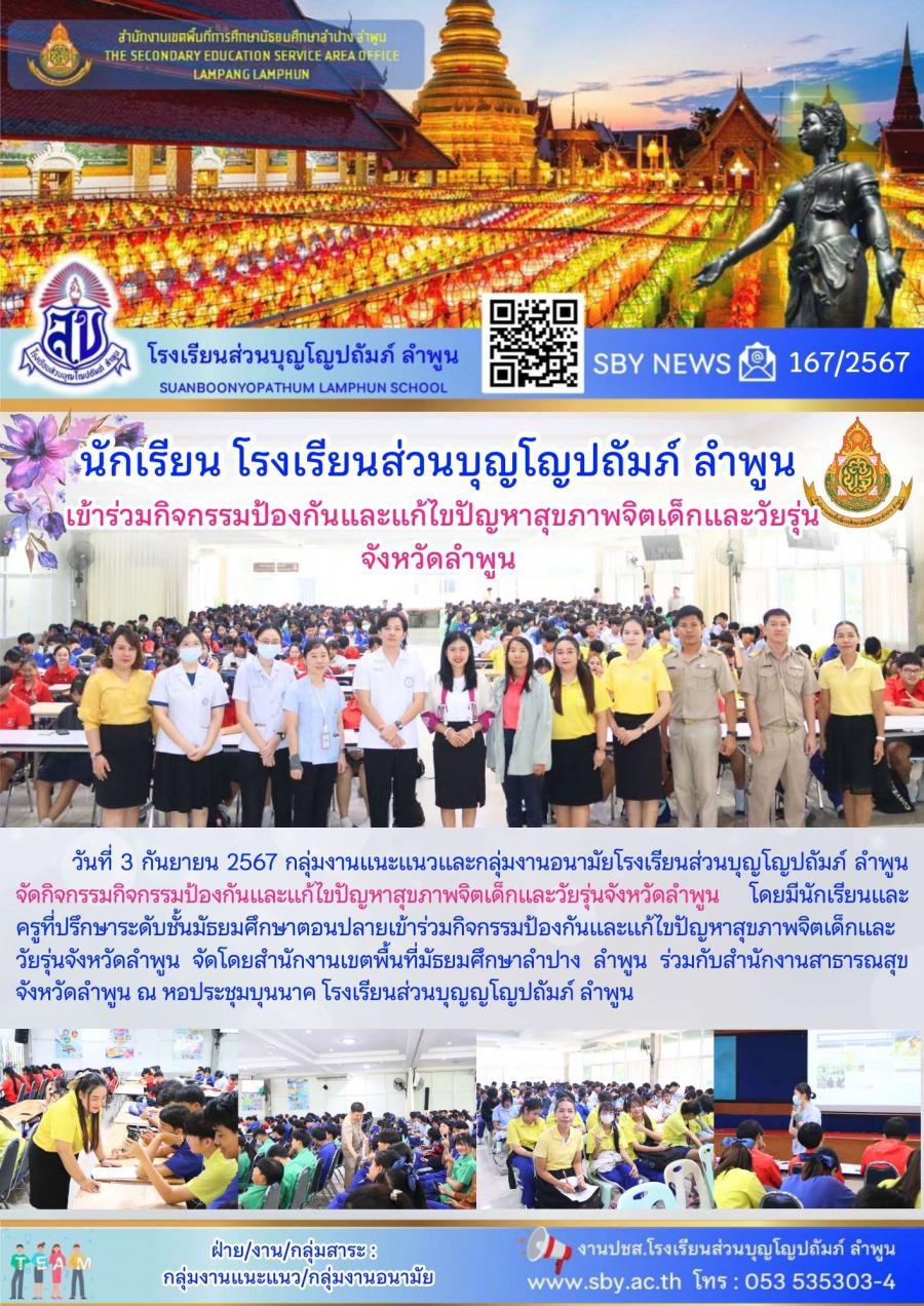 กิจกรรมป้องกันและแก้ไขปัญหาสุขภาพจิตเด็กและวัยรุ่น จังหวัดลำพูน