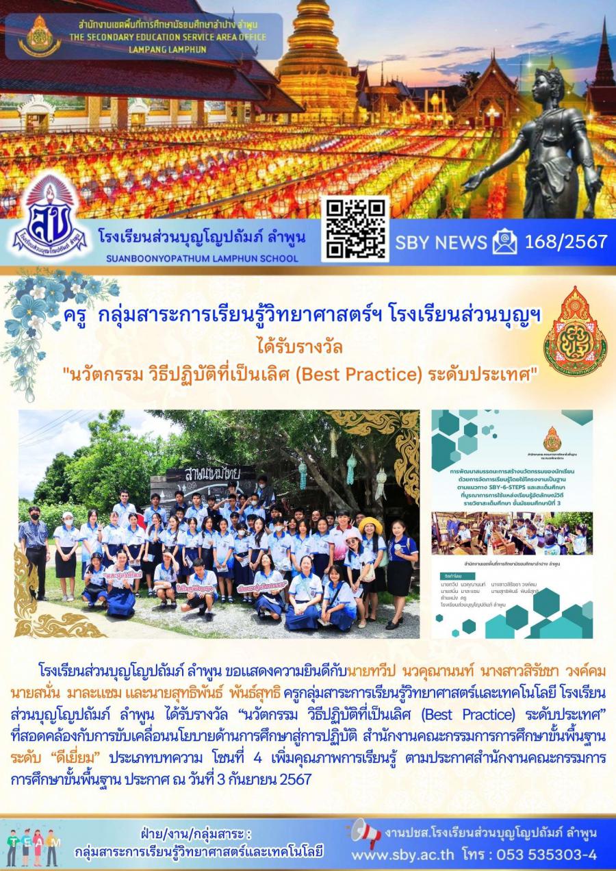ครูกลุ่มสาระการเรียนรู้วิทยาศาสตร์ ได้รับรางวัล นวัตกรรมวิธีปฏิบัติที่เป็นเลิศ (Best Practice) ระดับประเทศ