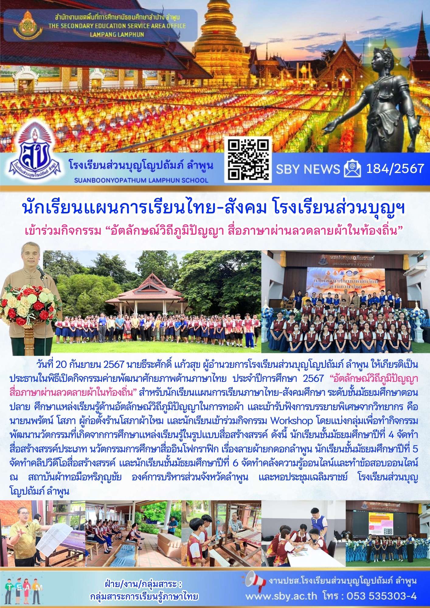 นักเรียนแผนการเรียนไทย-สังคม ร่วมกิจกรรม อัตลักษณ์วิถีภูมิปัญญา สื่อภาษาผ่านลวดลายผ้าในท้องถิ่น