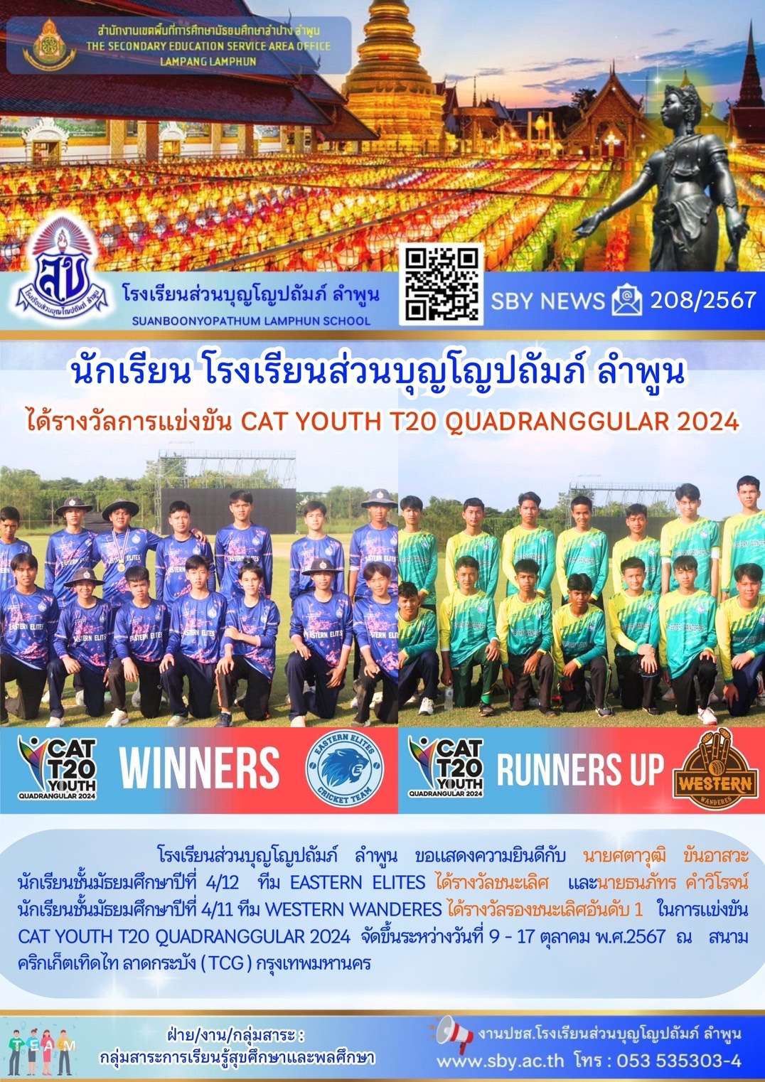 นักเรียนได้รับรางวัลการแข่งขัน CAT YOUTH T20 QUADRANGGULAR 2024