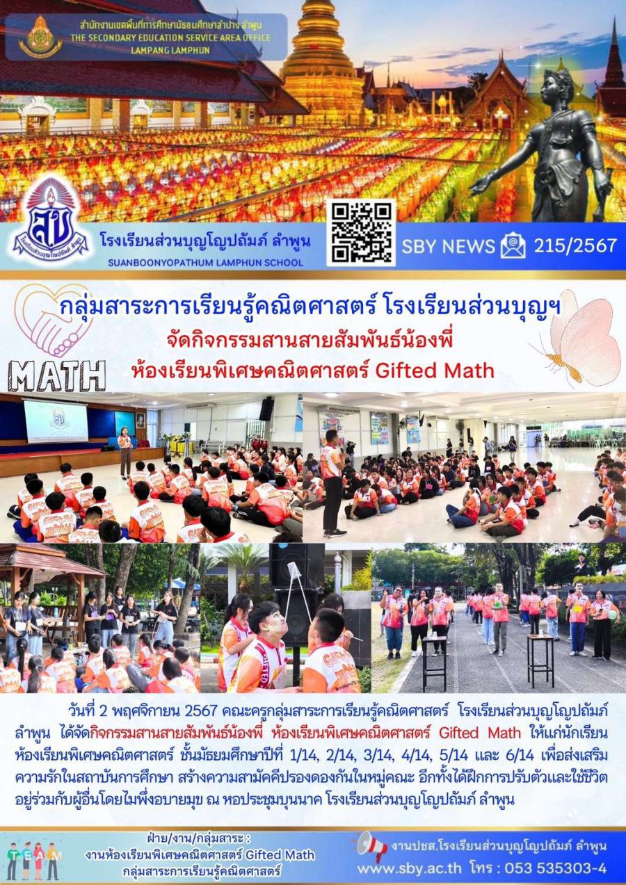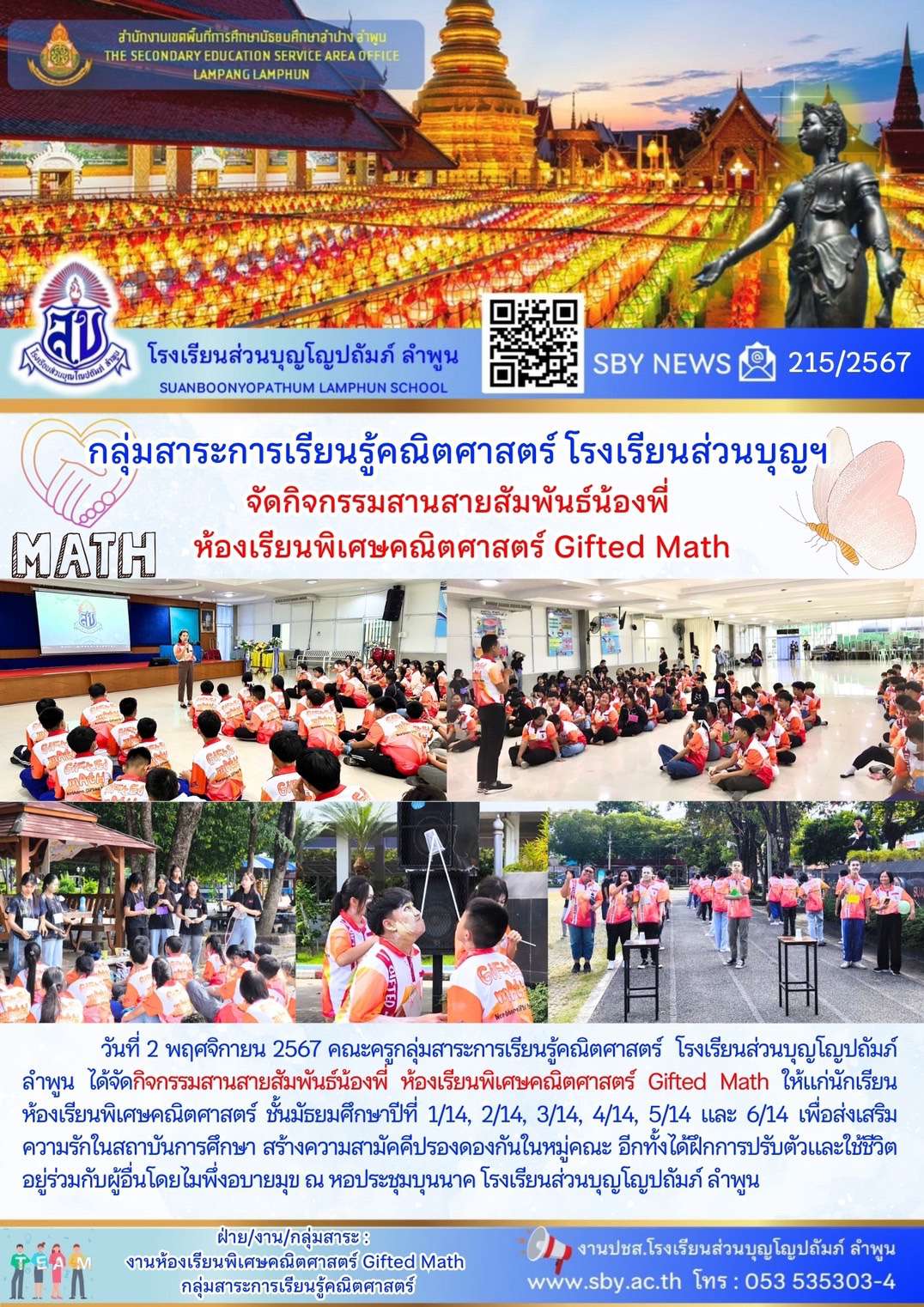 กิจกรรมสานสายสัมพันธ์น้องพี่ ห้องเรียนพิเศษคณิตศาสตร์ Gifted Math