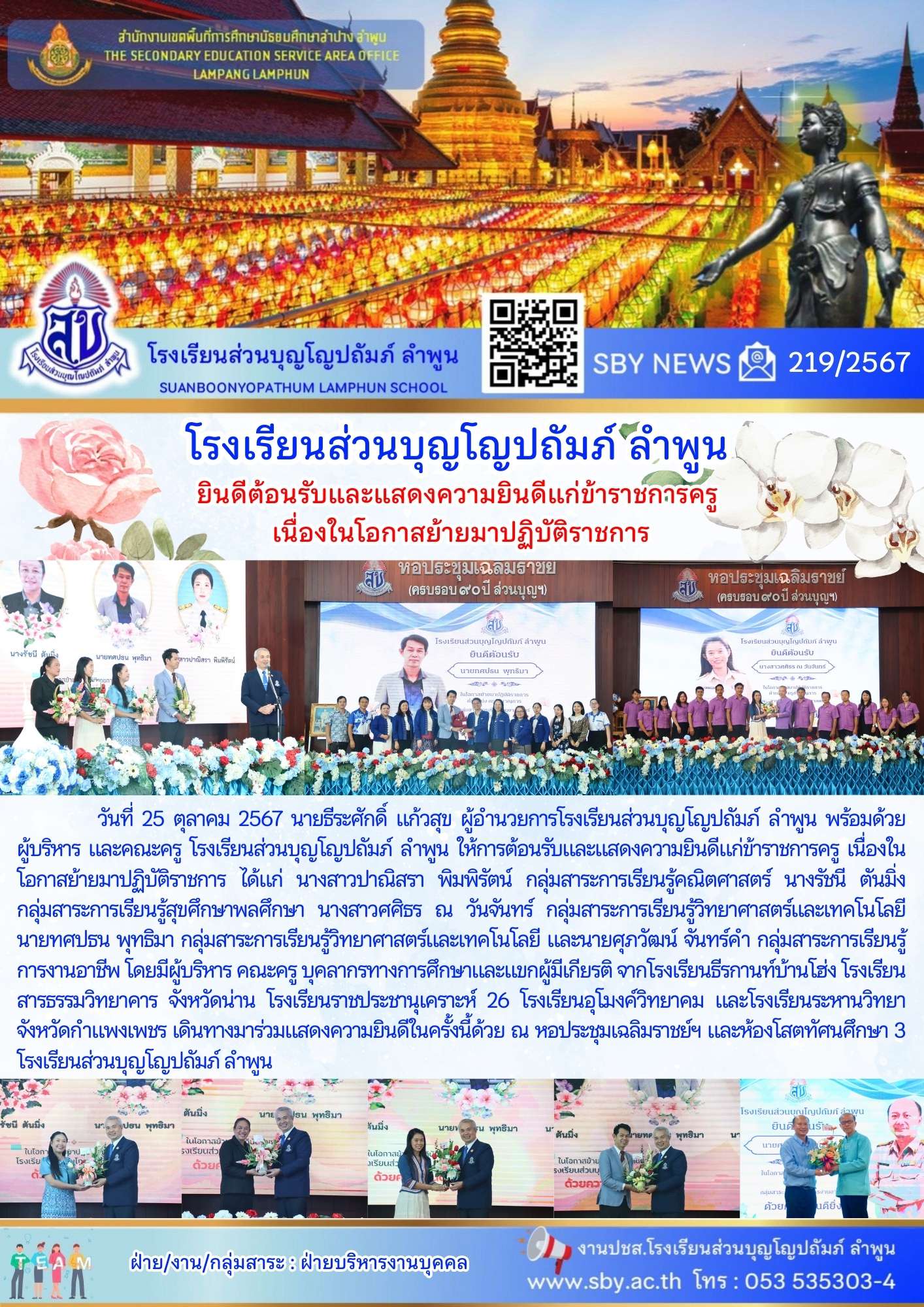 โรงเรียนส่วนบุญโญปถัมภ์ ลำพูนจัดกิจกรรมต้อนรับและแสดงความยินดีแก่ข้าราชการครู เนื่องในโอกาสย้ายมาปฏิบัติราชการ