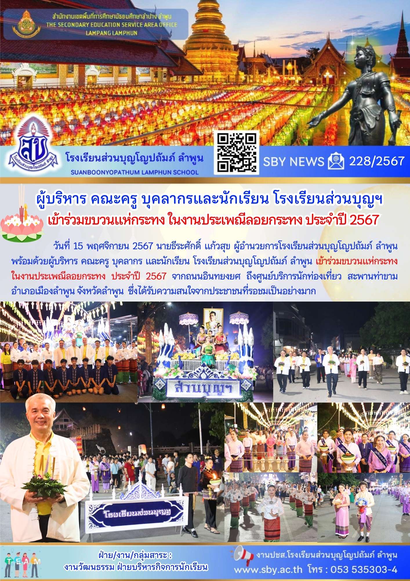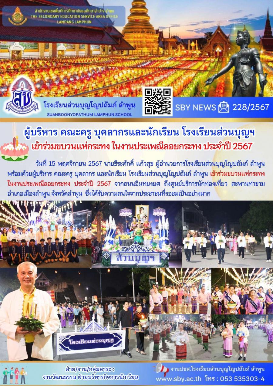 ผู้บริหาร คณะครูบุคลากรและนักเรียน ร่วมขบวนแห่กระทง ในงานประเพณีลอยกระทง ประจำปี 2567