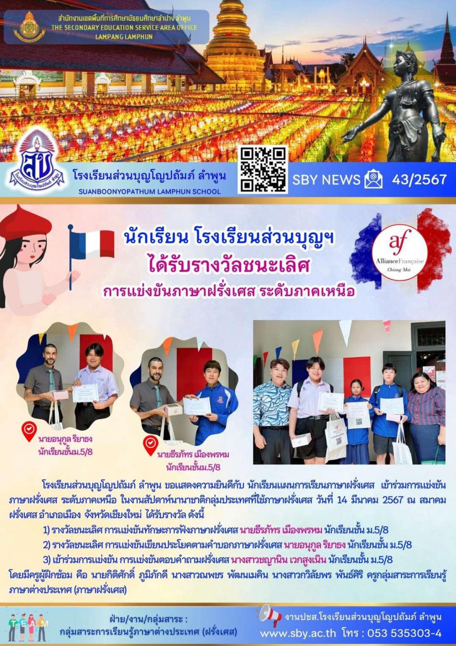 รางวัลชนะเลิศ การแข่งขันภาษาฝรั่งเศษ ระดับภาคเหนือ