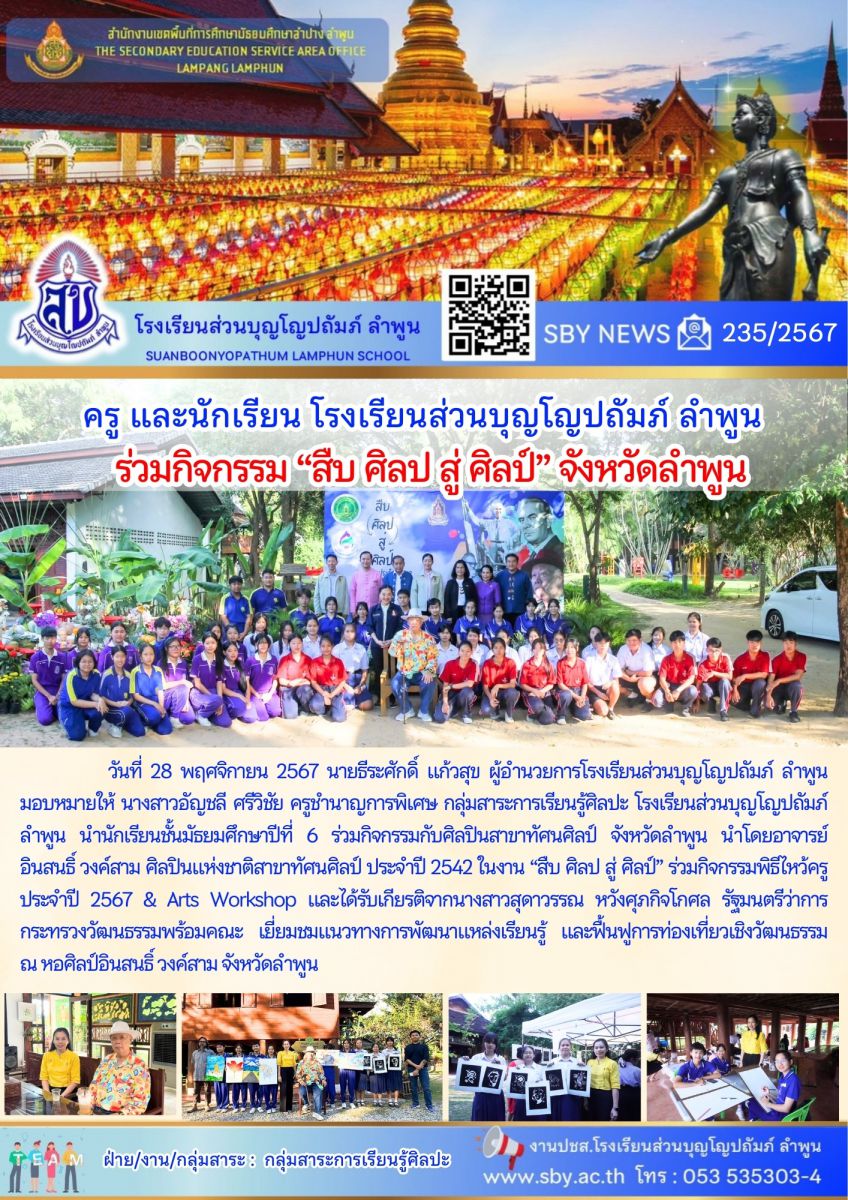 ครู และนักเรียนร่วมกิจกรรม สืบ ศิลป สู่ ศิลป์ จังหวัดลำพูน