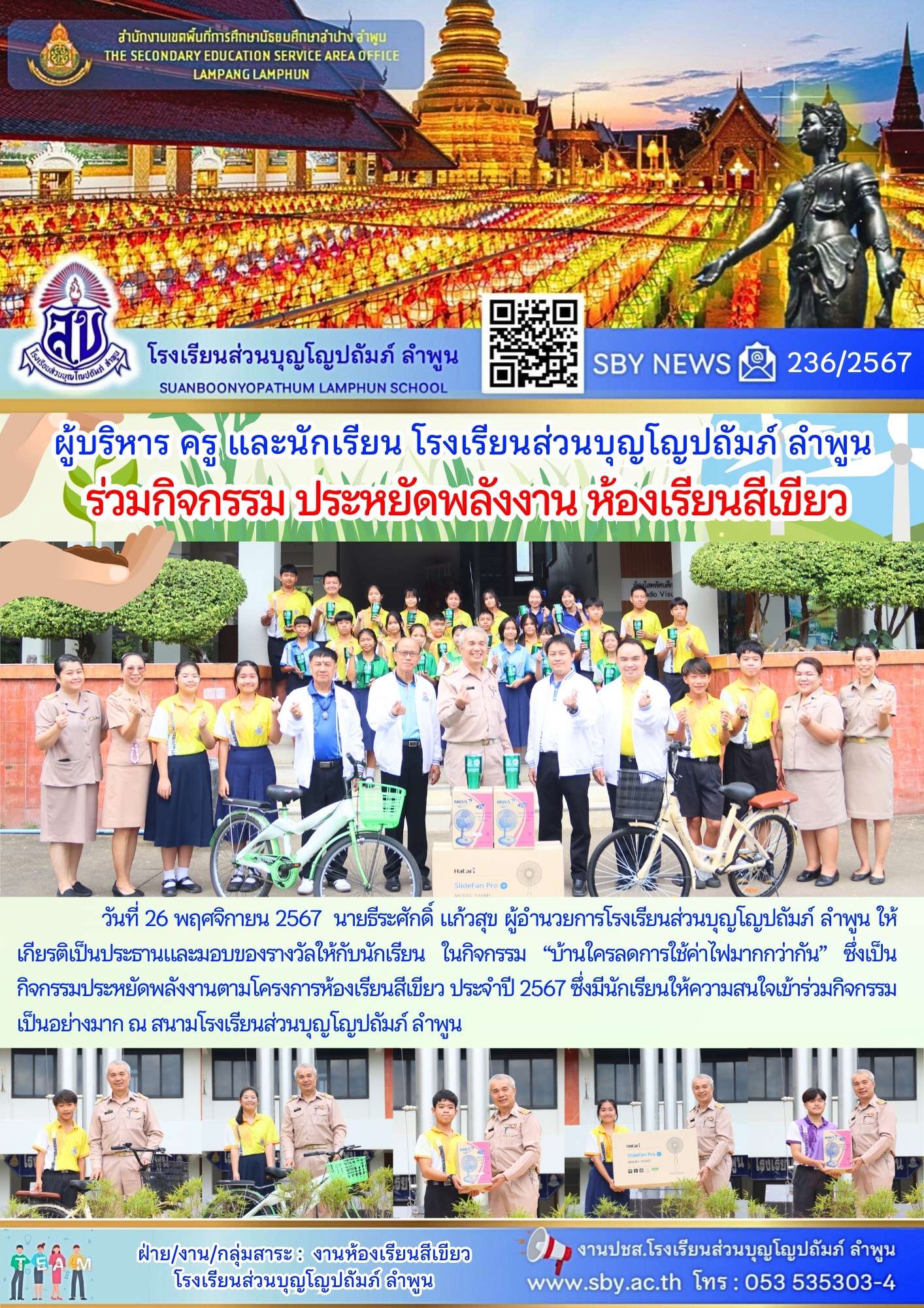 ผู้บริหารครูและนักเรียนร่วมกิจกรรม ประหยัดพลังงานห้องเรียนสีเขียว