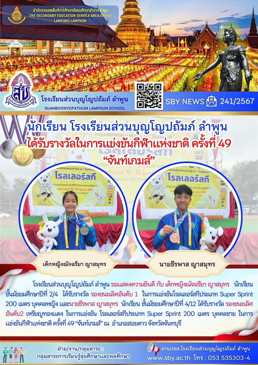 นักเรียนรับรางวัลในการแข่งขัน กีฬาแห่งชาติครั้งที่ 49 จันท์เกมส์