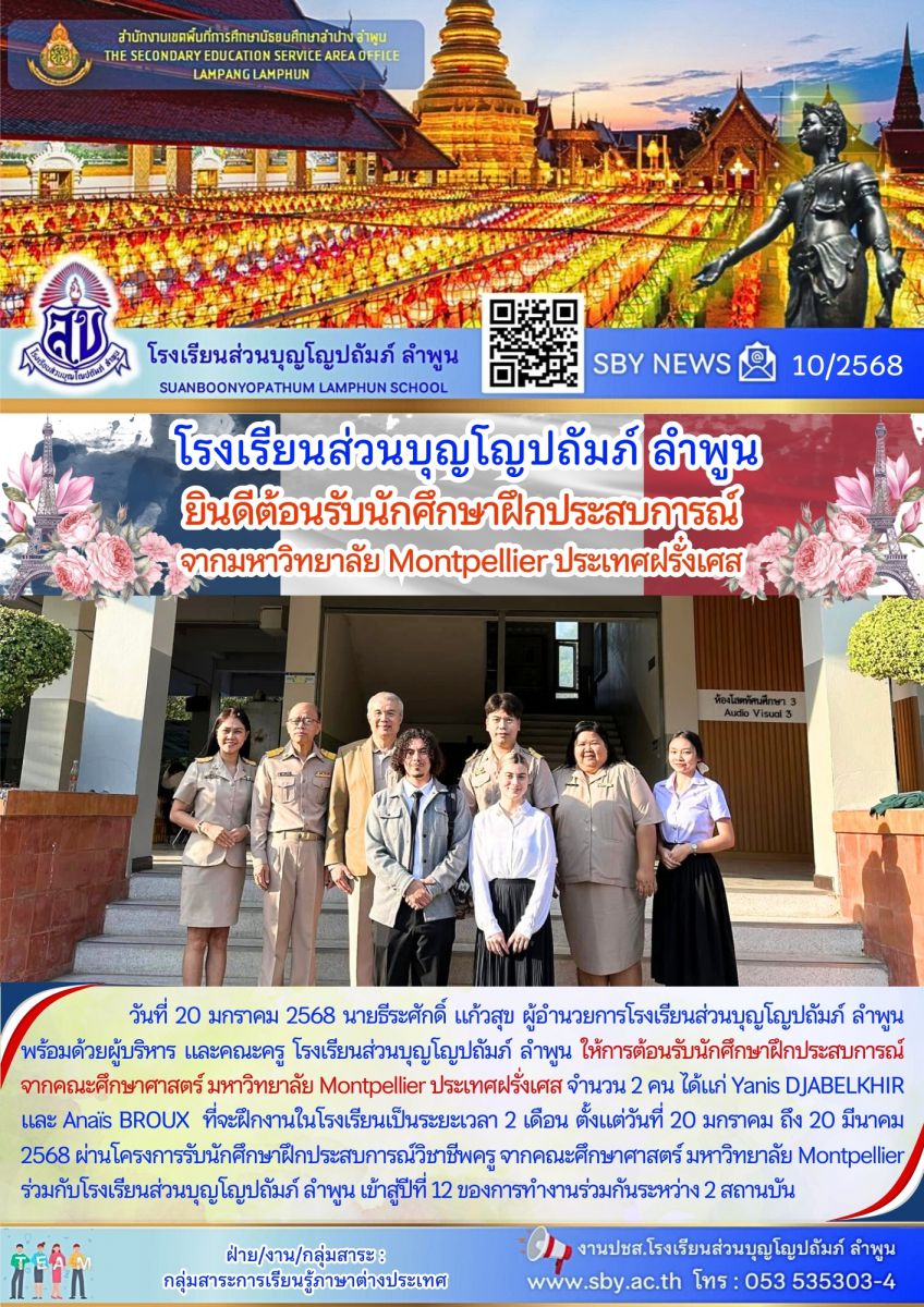ยินดีต้อนรับนักศึกษาฝึกประสบการณ์จากมหาวิทยาลัย Montpellier ประเทศฝรั่งเศส