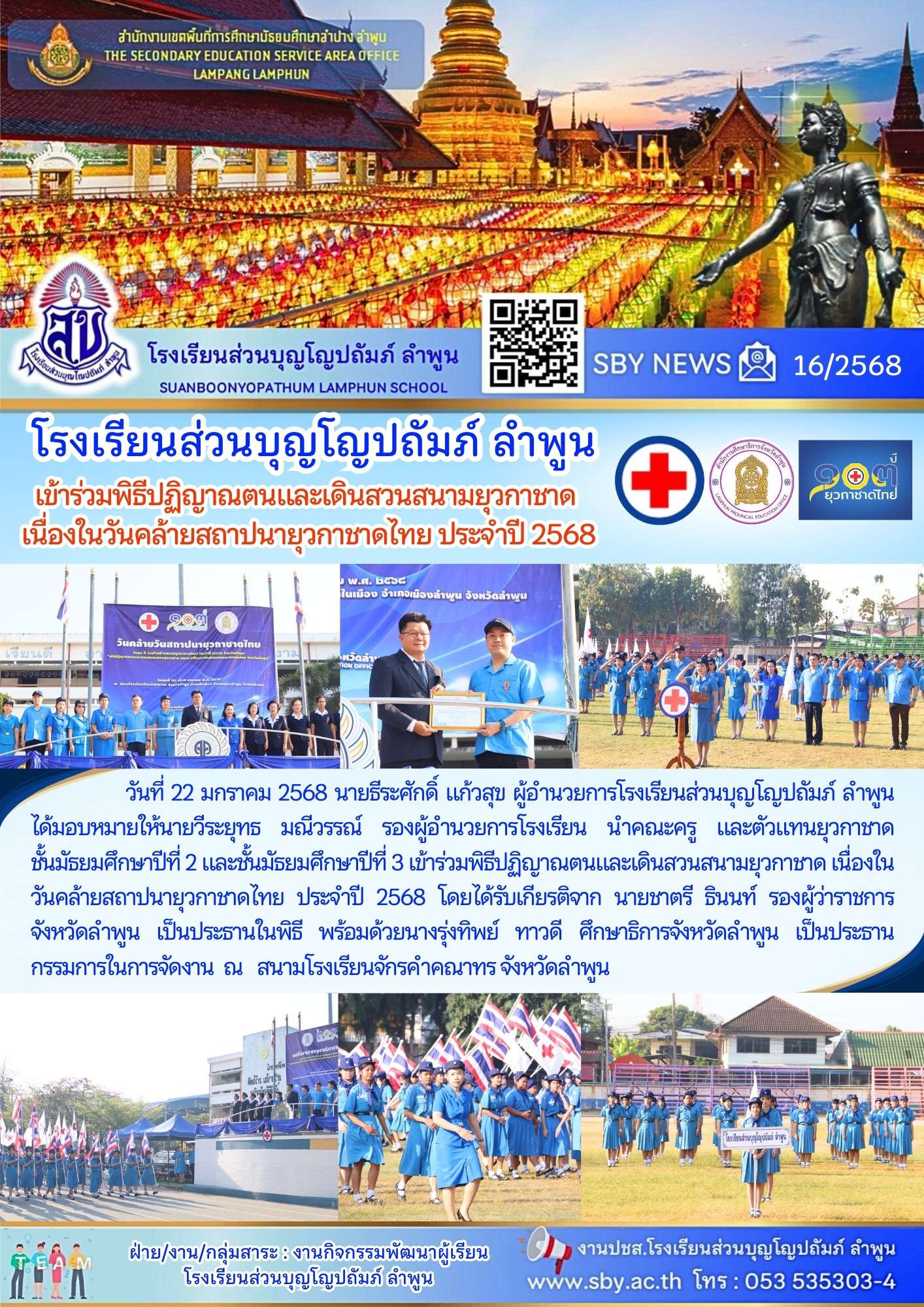 คณะครูและนักเรียนเข้าร่วมพิธีปฏิญาณตนและเดินสวนสนามยุวกาชาด เนื่องในวันคล้ายสถาปนายุวกาชาดไทย ประจำปี 2568