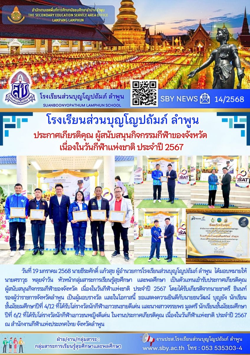 ประกาศเกียรติคุณ ผู้สนับสนุนกิจกรรมกีฬาของจังหวัด เนื่องในวันกีฬาแห่งชาติ ประจำปี 2567