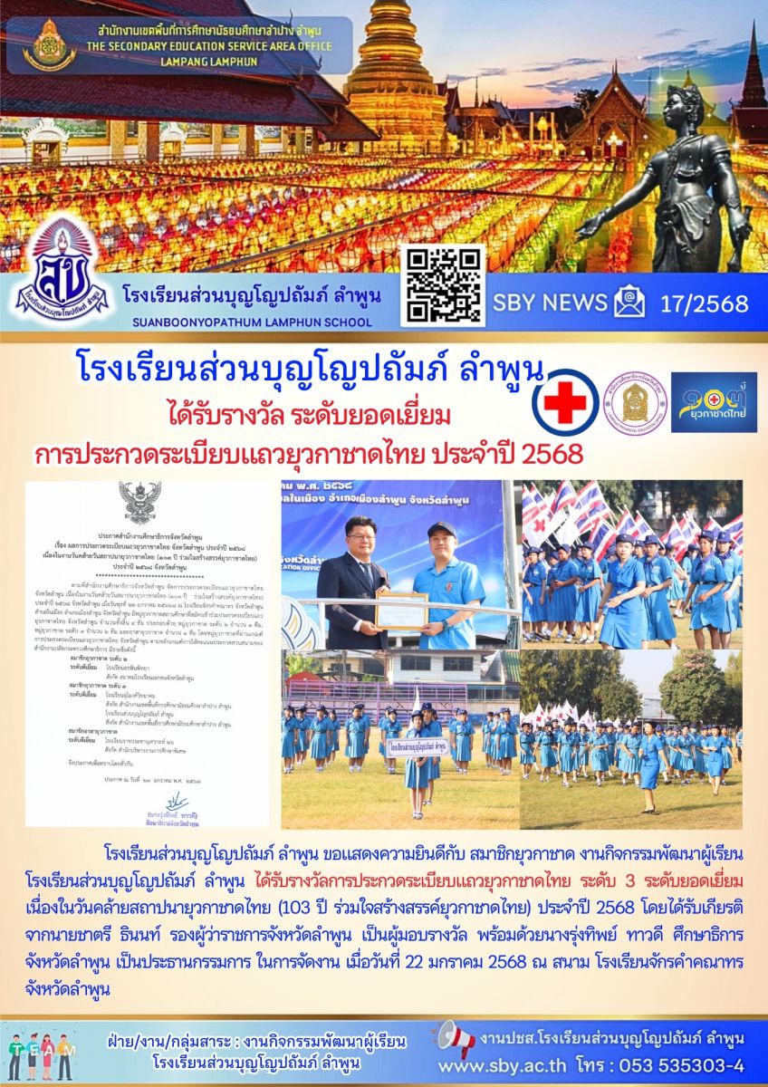 รางวัลระดับยอดเยี่ยมการประกวดระเบียบแถวยุวกาชาดไทย ประจำปี 2568