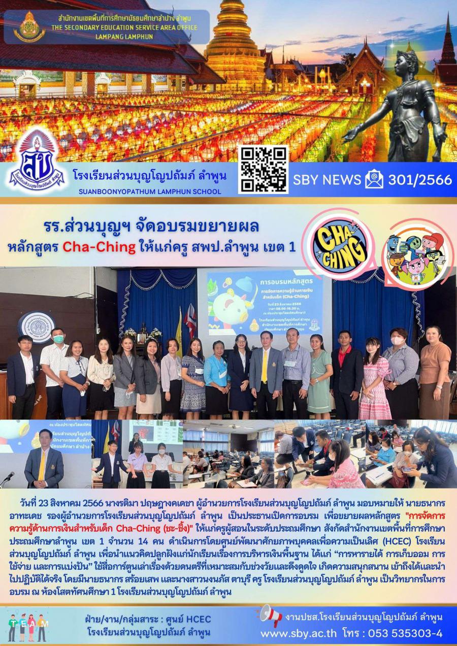 อบรมขยายผล หลักสูตร Cha-Ching ให้กับคณะครูสังกัด สพป.ลำพูน เขต 1