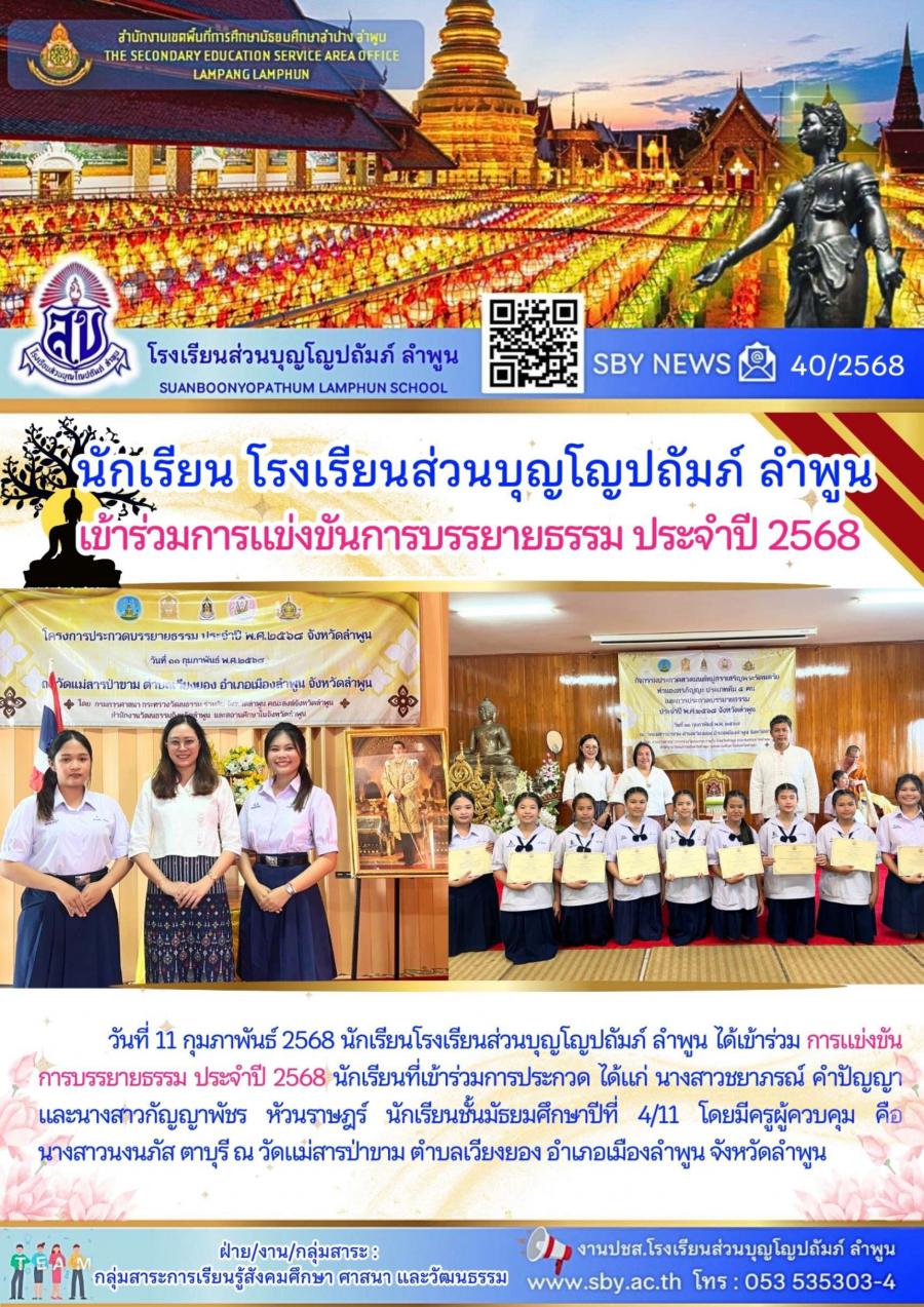 นักเรียนเข้าร่วมการแข่งขันบรรยายธรรม ประจำปี 2568