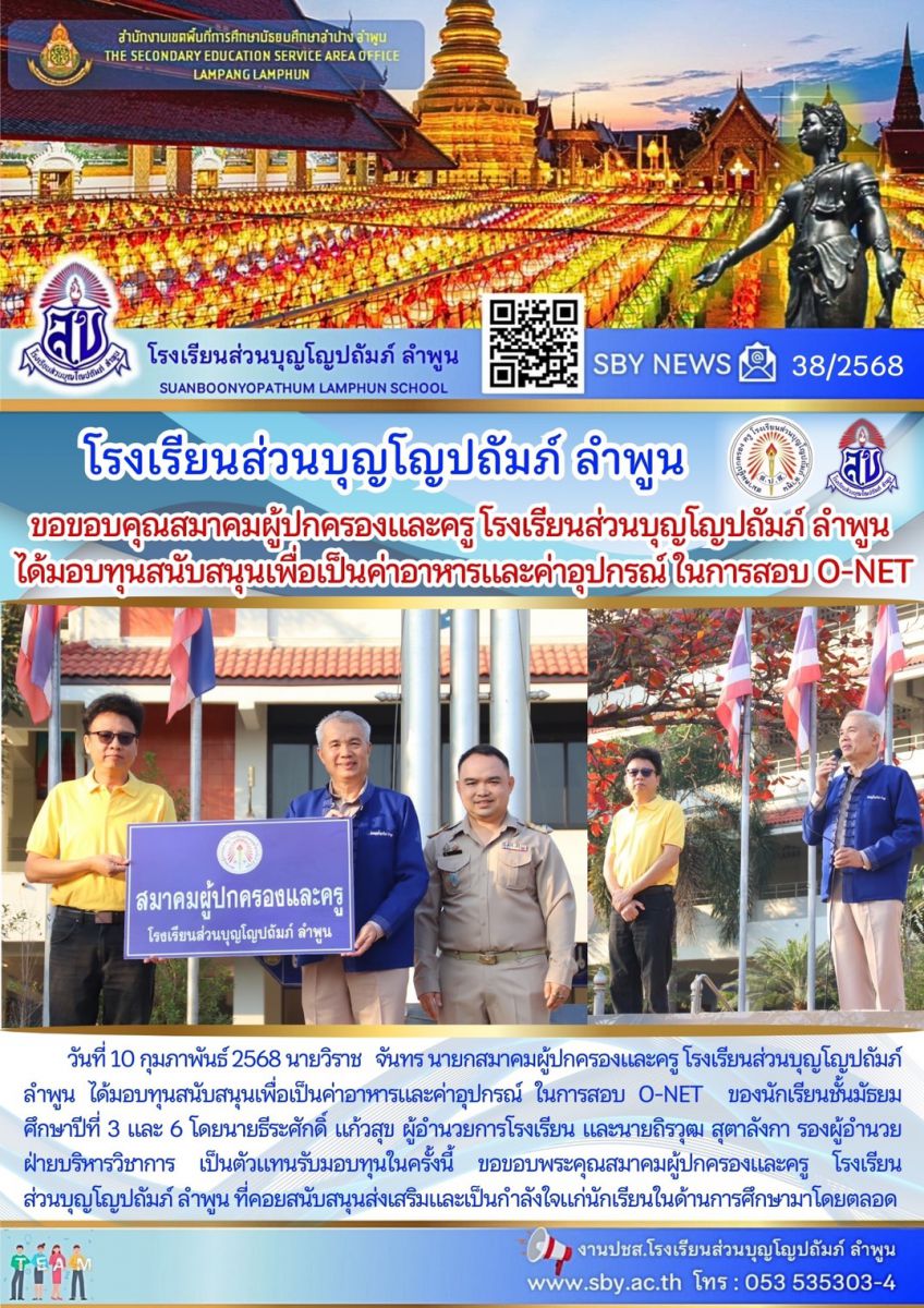 สมาคมผู้ปกครองและครูฯ มอบทุนสนับสนุนเพื่อเป็นค่าอาหารและค่าอุปกรณ์ในการสอบ O-NET