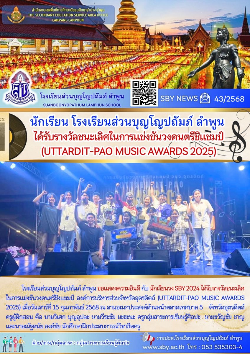 นักเรียนรับรางวัลชนะเลิศการแข่งขันวงดนตรีชิงแชมป์