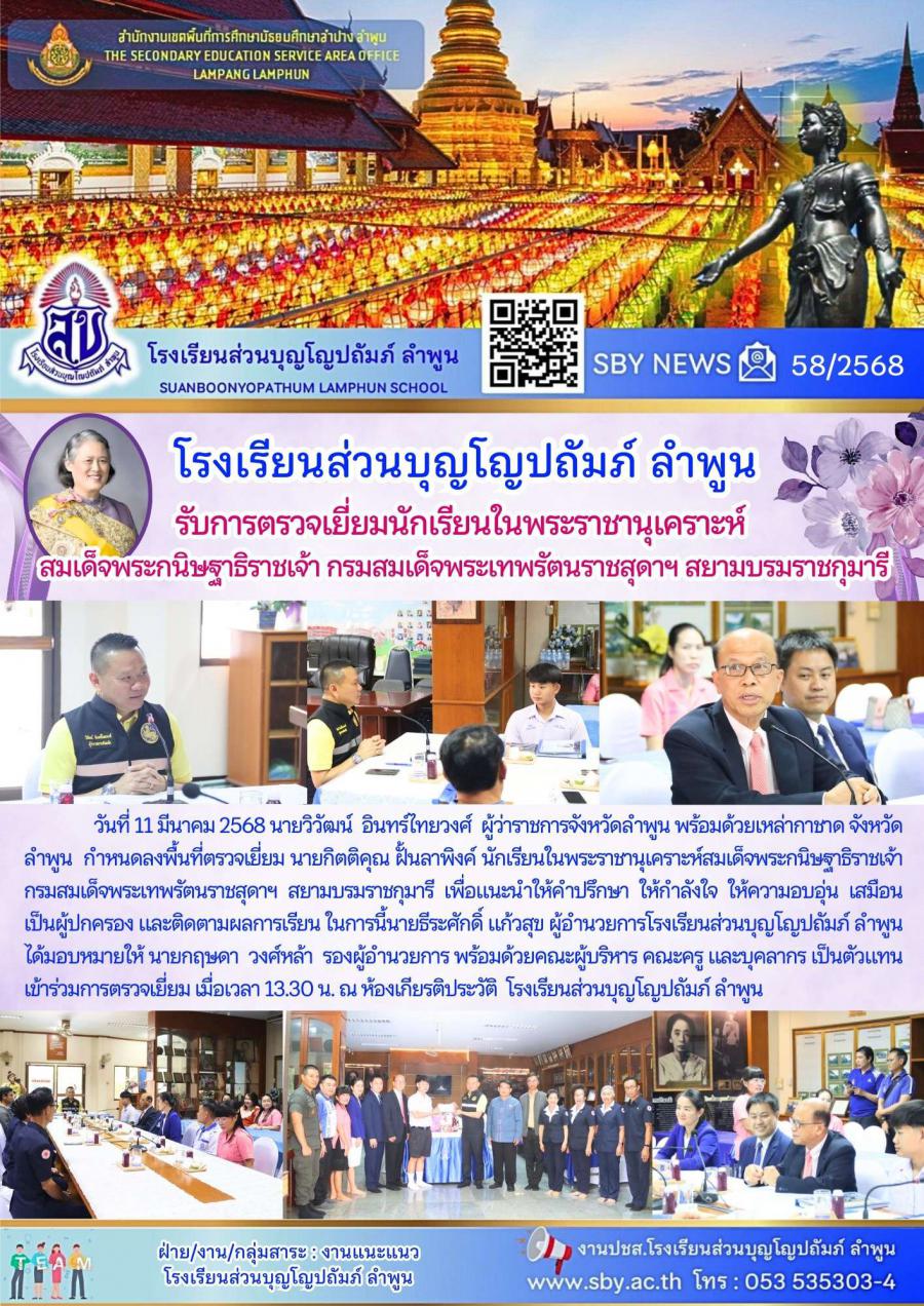 รับตรวจเยี่ยมนักเรียนในพระราชานุเคราะห์ สมเด็จพระกนิษฐาธิราชเจ้าฯ