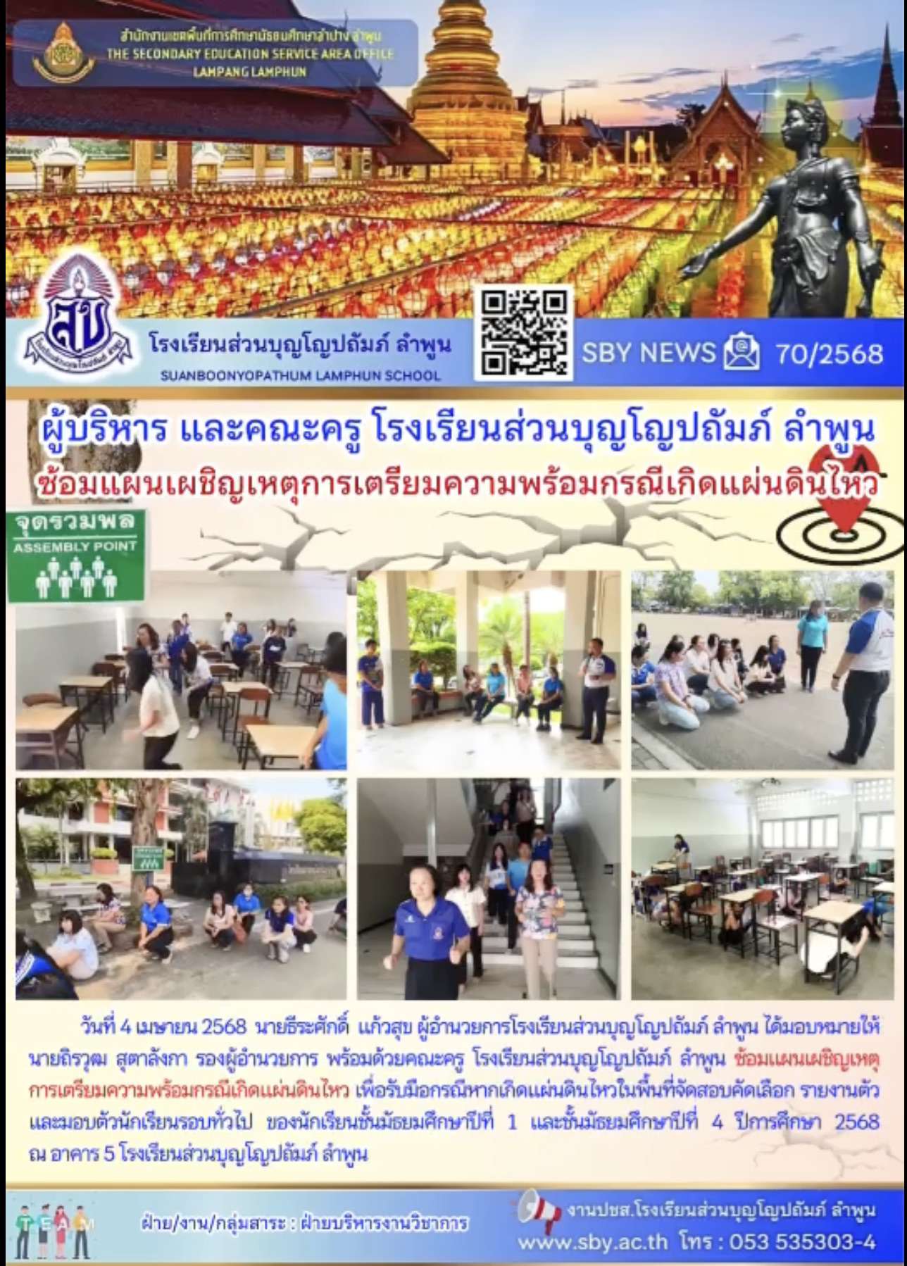 ผู้บริหารและครู ซ้อมแผนเผชิญเหตุการเตรียมความพร้อมกรณีเกิดแผ่นดินไหว