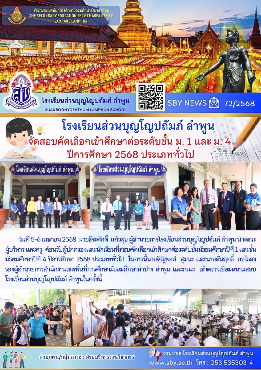 การสอบคัดเลือกเข้าศึกษาต่อระดับชั้นม.1 และ ม.4 ปี2568 ประเภททั่วไป