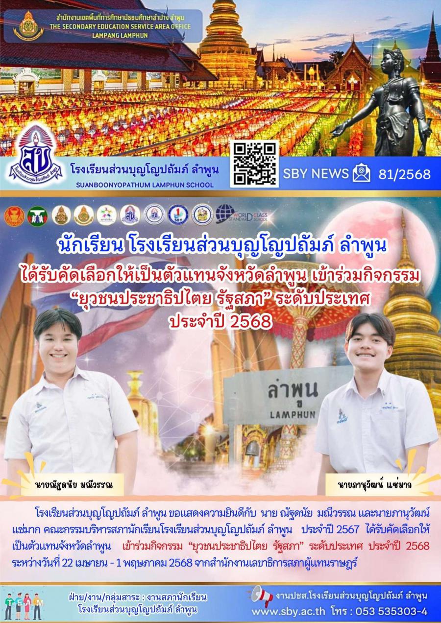 นักเรียนตัวแทนจังหวัดลำพูนร่วมกิจกรรมยุวชนประชาธิปไตยรัฐสภา ระดับประเทศ ปี2568