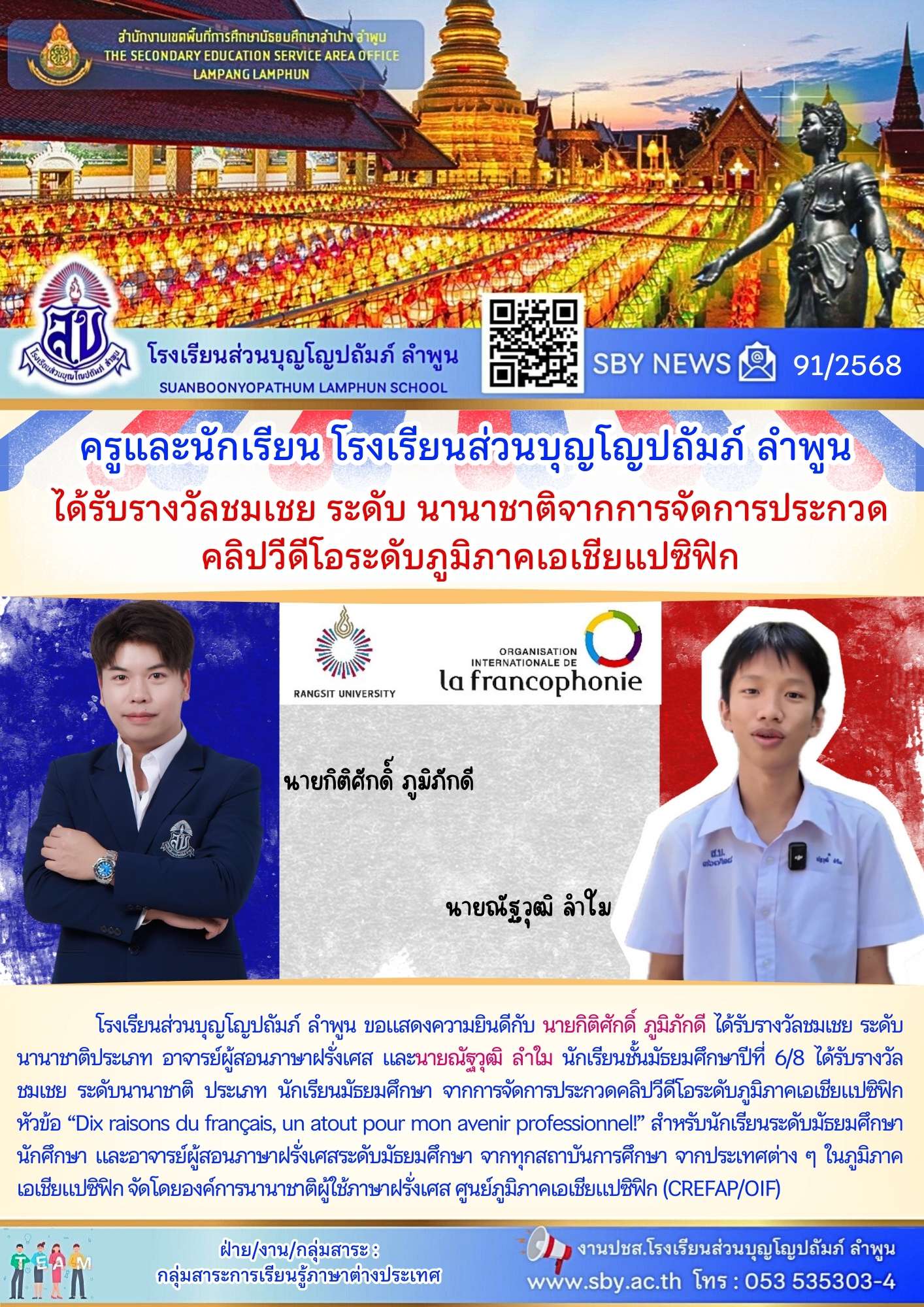 รางวัลชมเชยระดับนานาชาติ จากการประกวดคลิปวิดีโอ ระดับภูมิภาคเอเชียแปซิฟิค