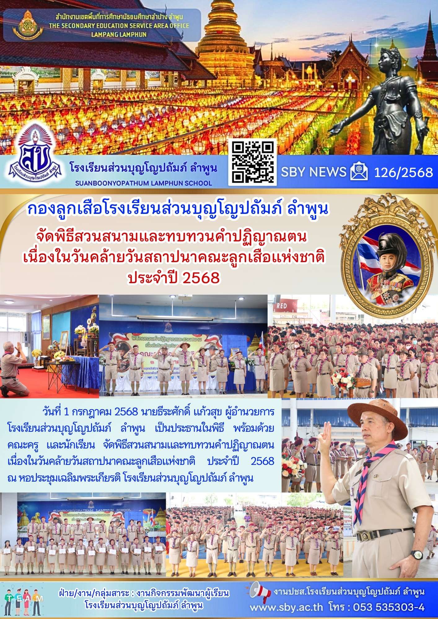 พิธีสวนสนามและทบทวนคำปฏิญาณตน เนื่องในวันคล้ายวันสถาปนาคณะลูกเสือแห่งชาติ ปี 2568