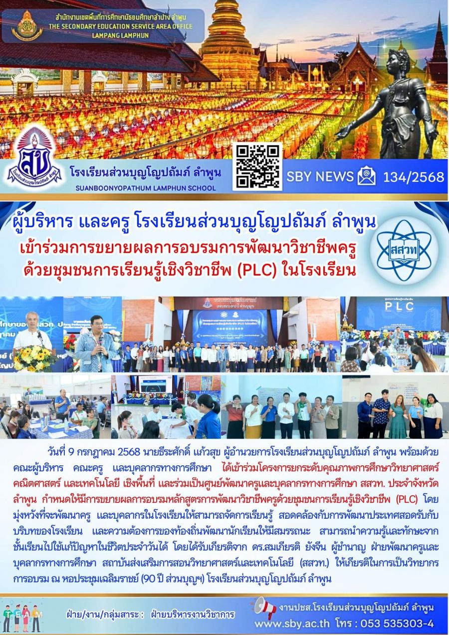 การขยายผลการอบรมพัฒนาวิชาชีพครูด้วยชุมชนการเรียนรู้เชิงวิชาชีพ(PLC)ในโรงเรียน
