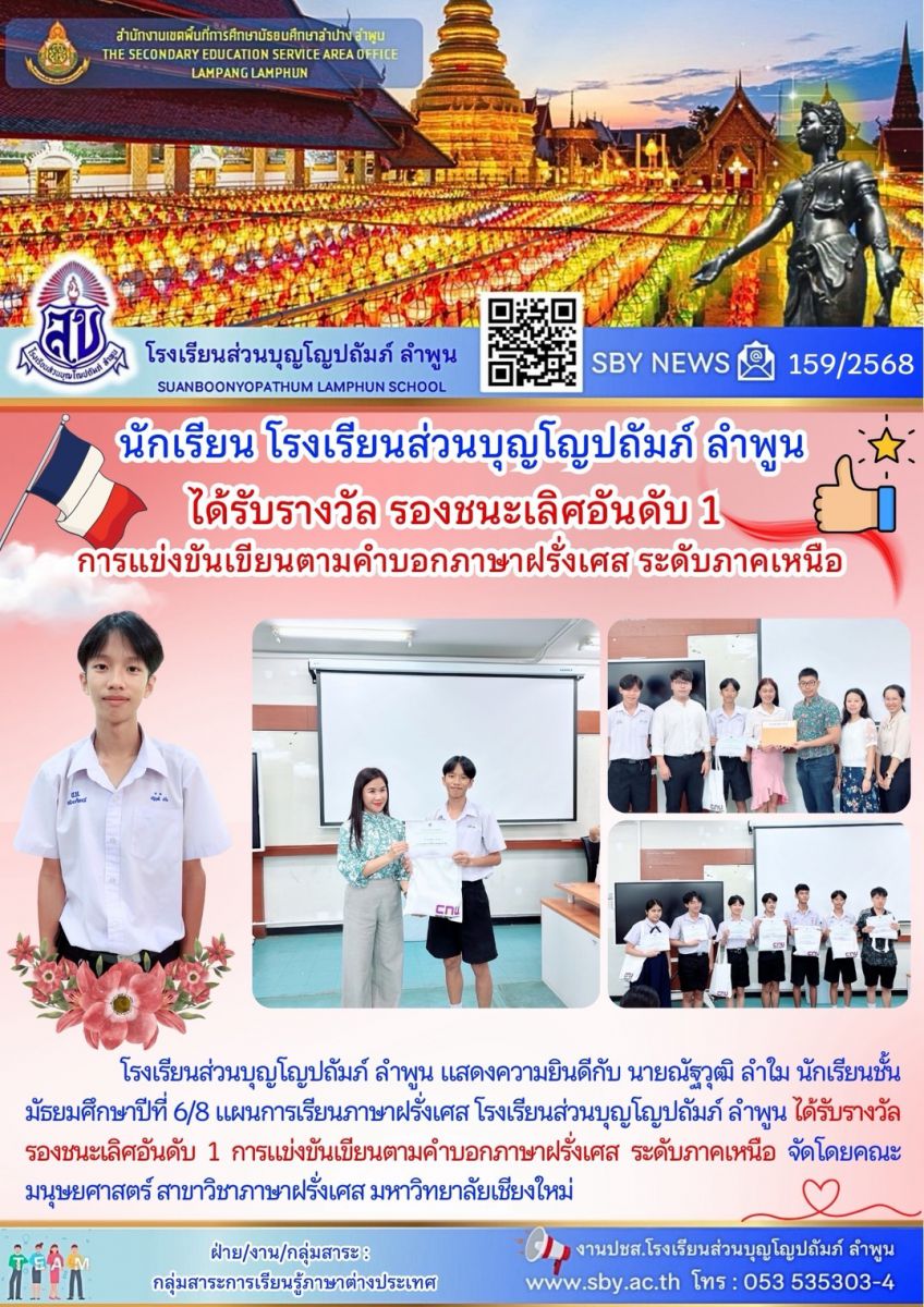 รางวัลรองชนะเลิศอันดับ 1 การแข่งขันเขียนตามคำบอกภาษาฝรั่งเศส ระดับภาคเหนือ