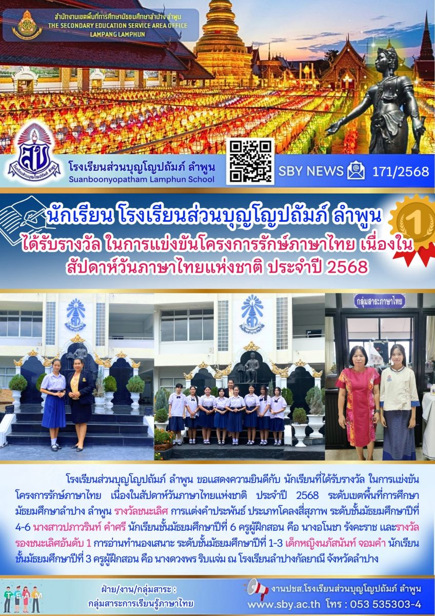 รางวัลการแข่งขันโครงการรักษ์ภาษาไทย เนื่องในสัปดาห์วันภาษาไทยแห่งชาติ ประจำปี 2568