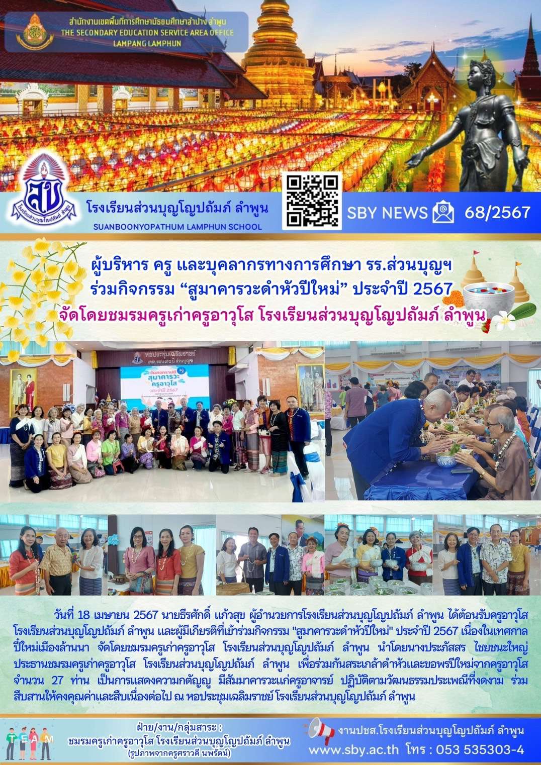 ผู้บริหาร ครู และบุคลากรทางการศึกษา โรงเรียนส่วนบุญฯ ร่วมกิจกรรม สูมาคารวะดำหัวปี๋ใหม่ ประจำปี 2567
