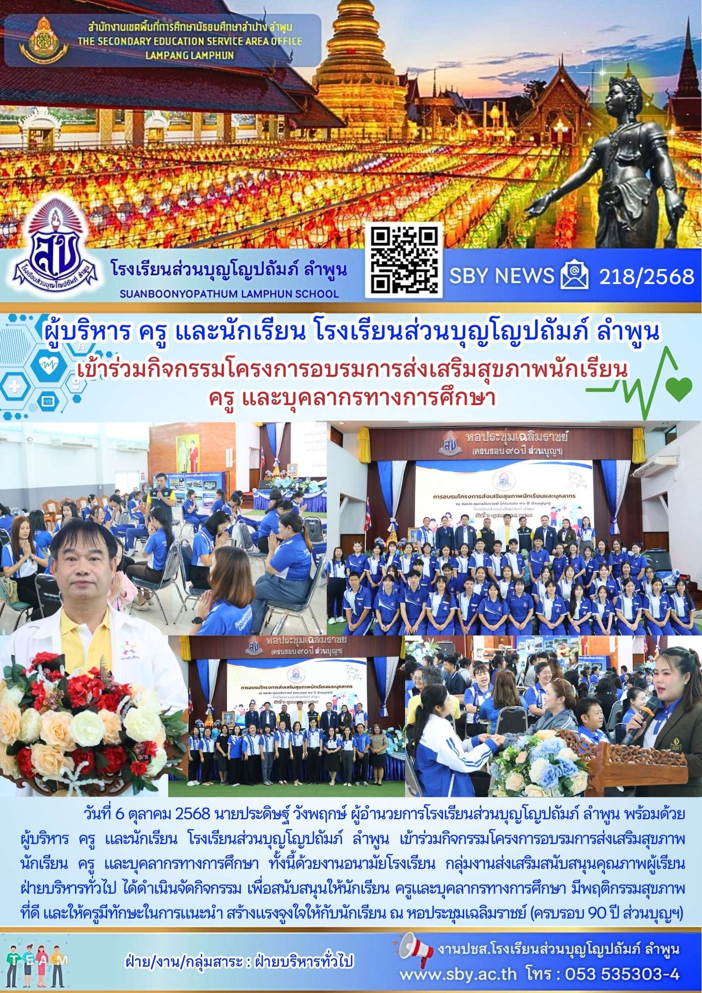กิจกรรมโครงการอบรมการส่งเสริมสุขภาพนักเรียน ครู และบุคลากรทางการศึกษา