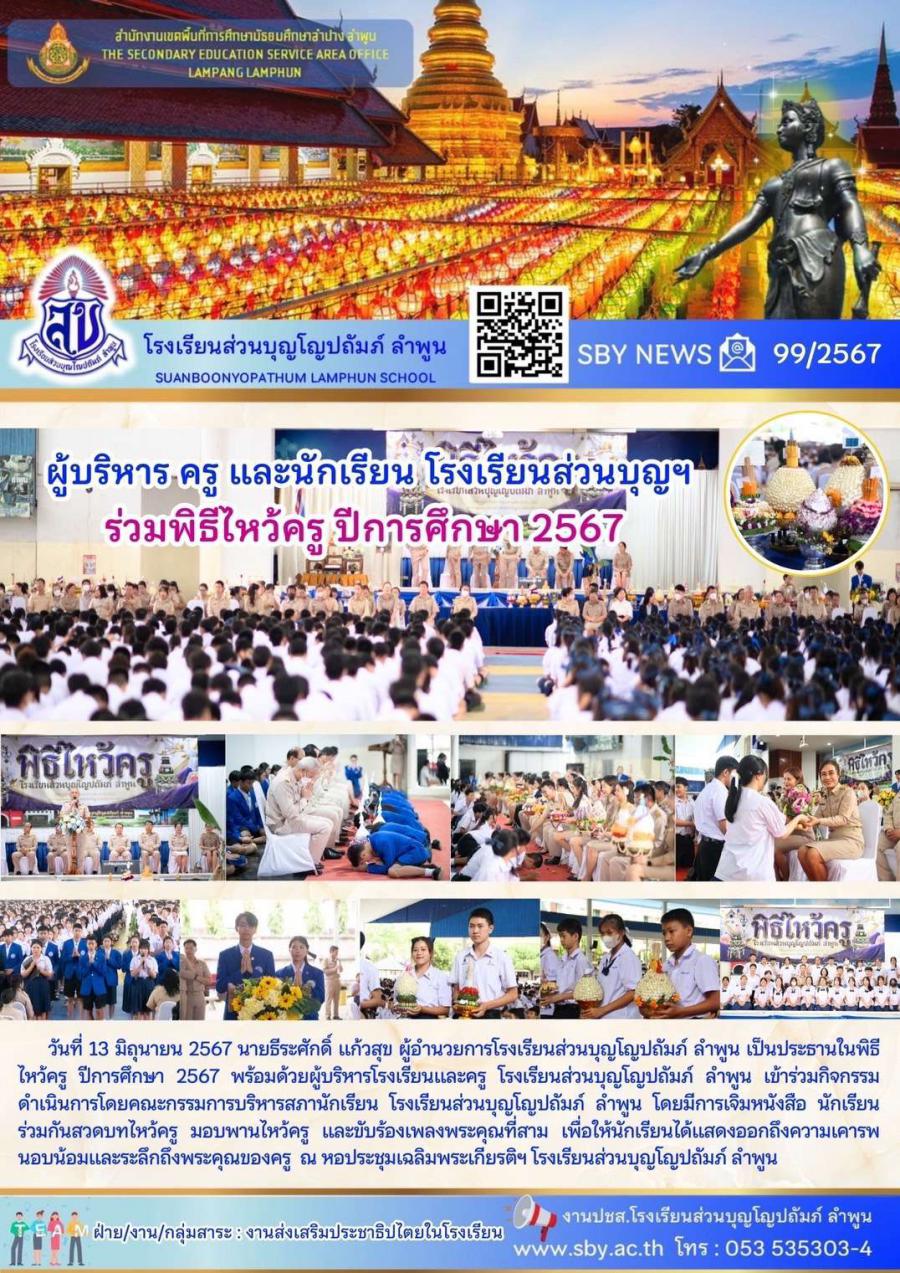 กิจกรรมพิธีไหว้ครู ประจำปีการศึกษา 2567