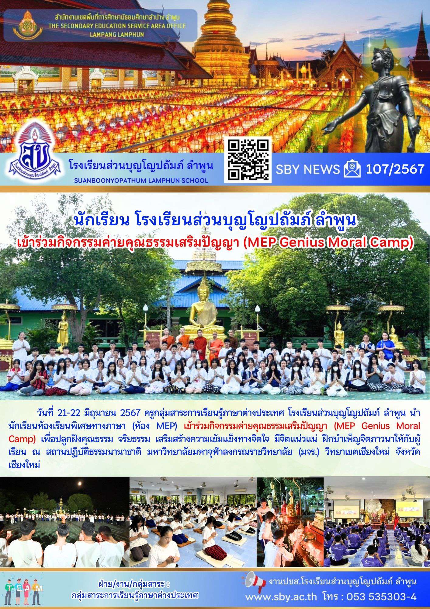 เข้าร่วมกิจกรรมค่ายคุณธรรมเสริมปัญญา (MEP Genius Moral Camp) ณ มจร.วิทยาเขตเชียงใหม่