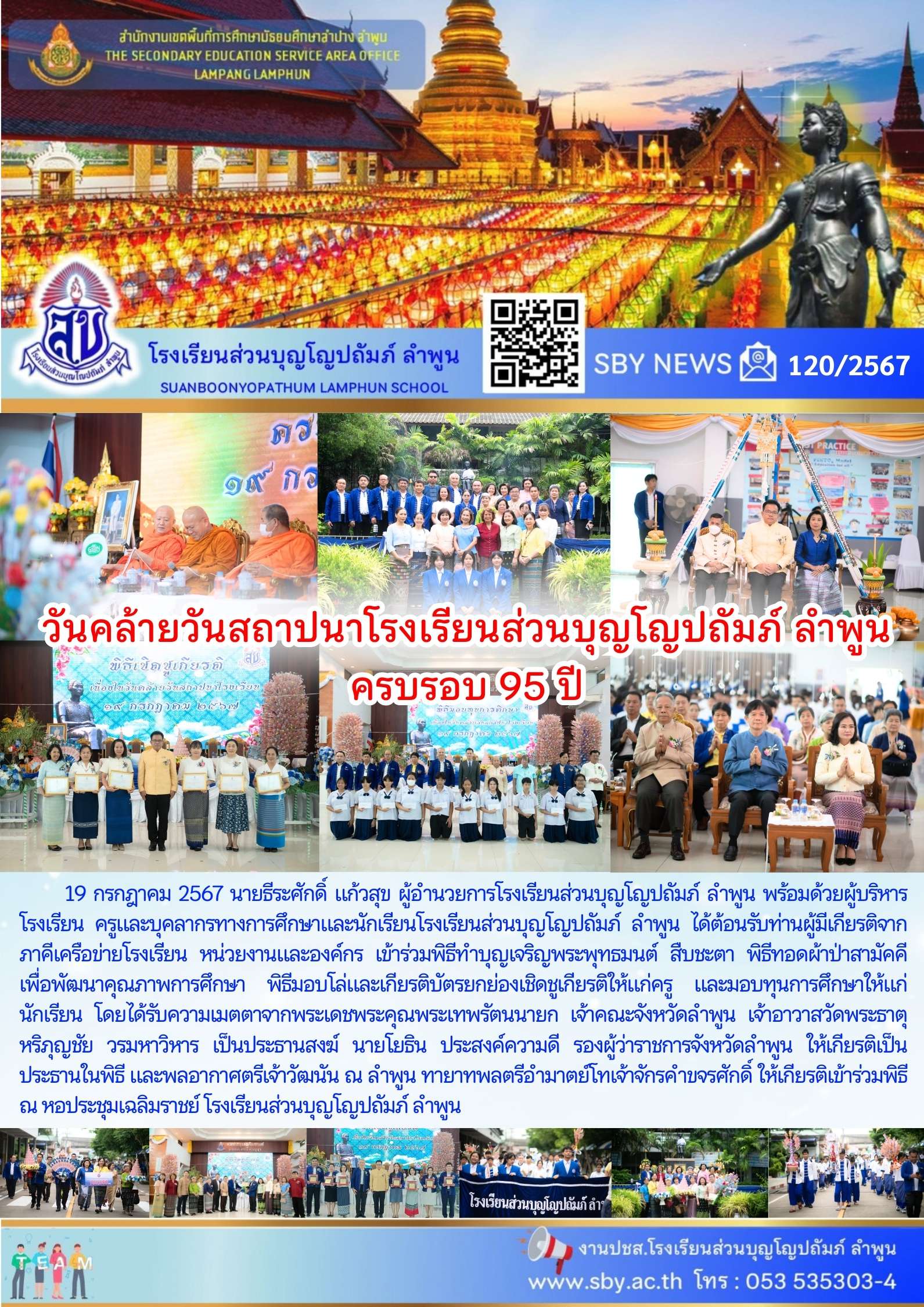 วันคล้ายวันสถาปนาโรงเรียนส่วนบุญโญปถัมภ์ ลำพูน ครบรอบ 95 ปี