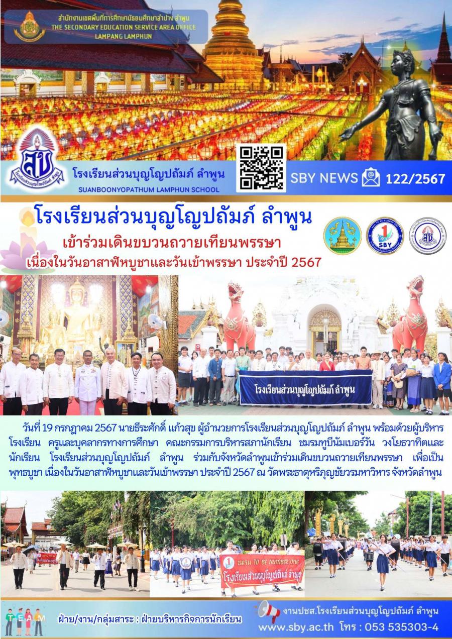 เข้าร่วมเดินขบวนถวายเทียนพรรษา เนื่องในวันอาสาฬหบูชาและวันเข้าพรรษา ประจำปี 2567