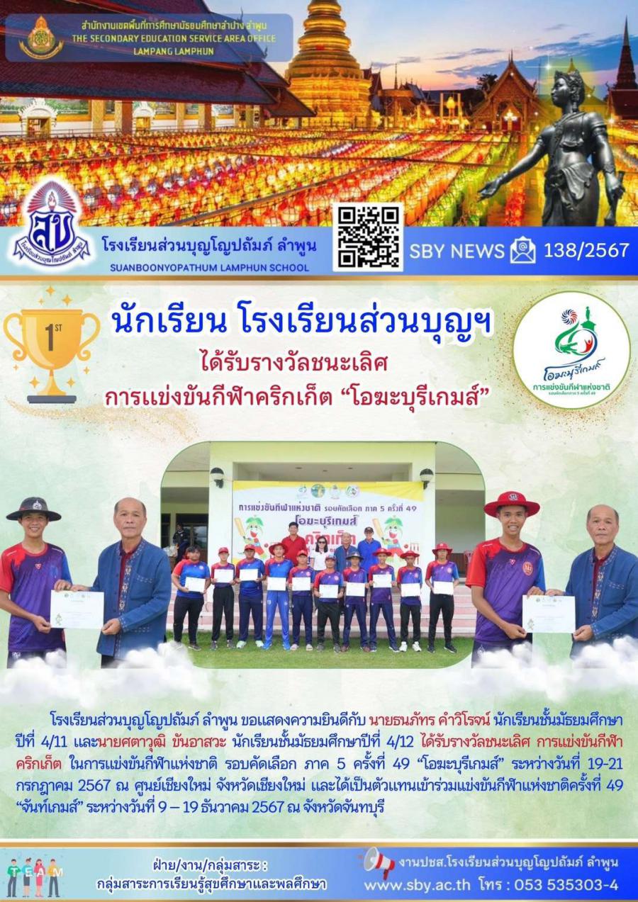รับรางวัลชนะเลิศ การแข่งขันกีฬาคริกเก็ต โอฆะบุรีเกมส์