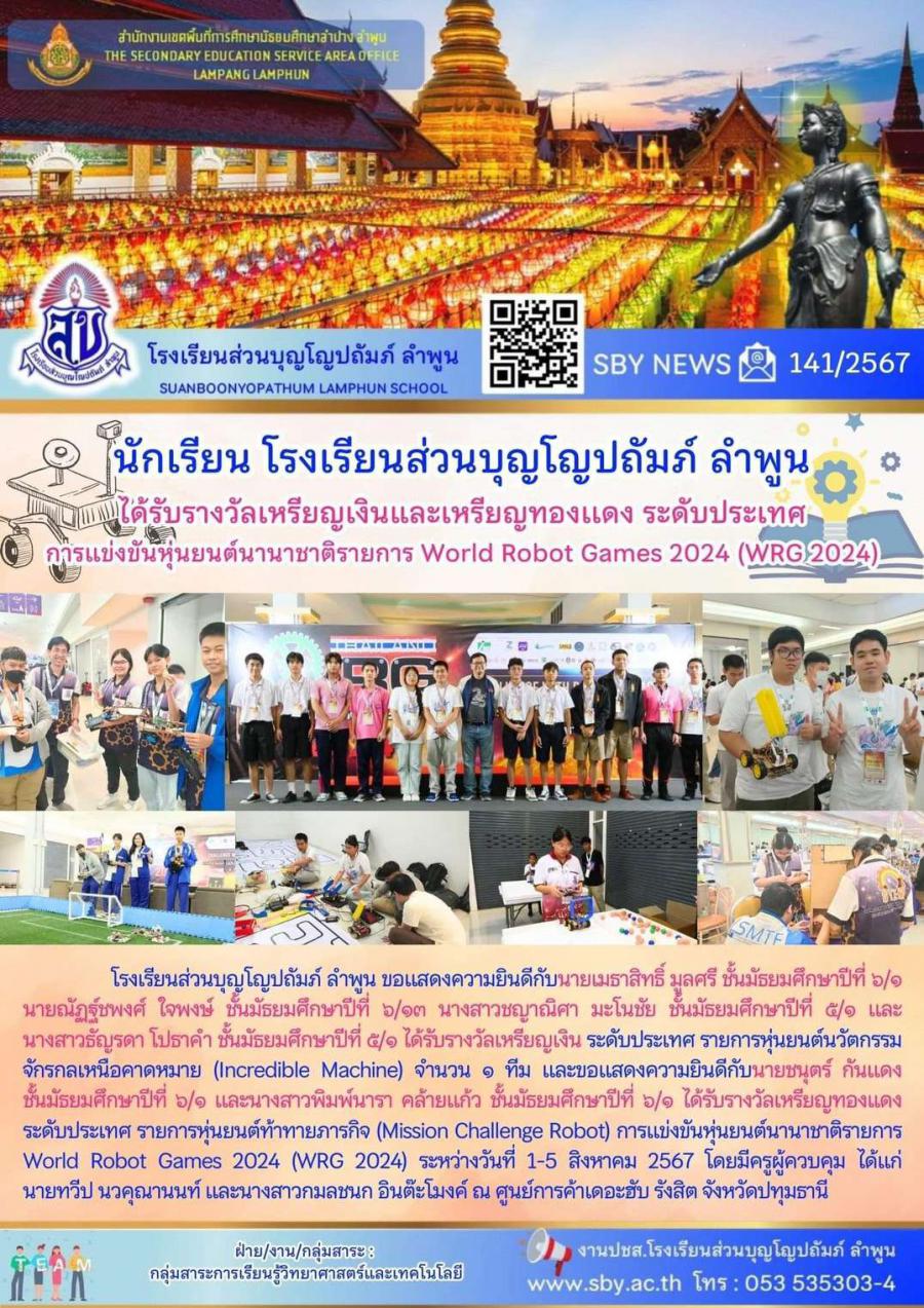 รับรางวัลเหรียญเงินและเหรียญทองแดง ระดับประเทศ การแข่งขันหุ่นยนต์นานาชาติ รายการ World Robot Games 2024 (WRG 2024)