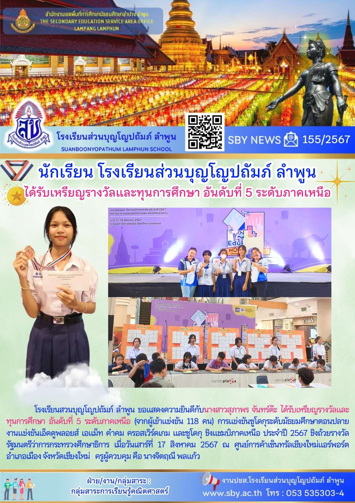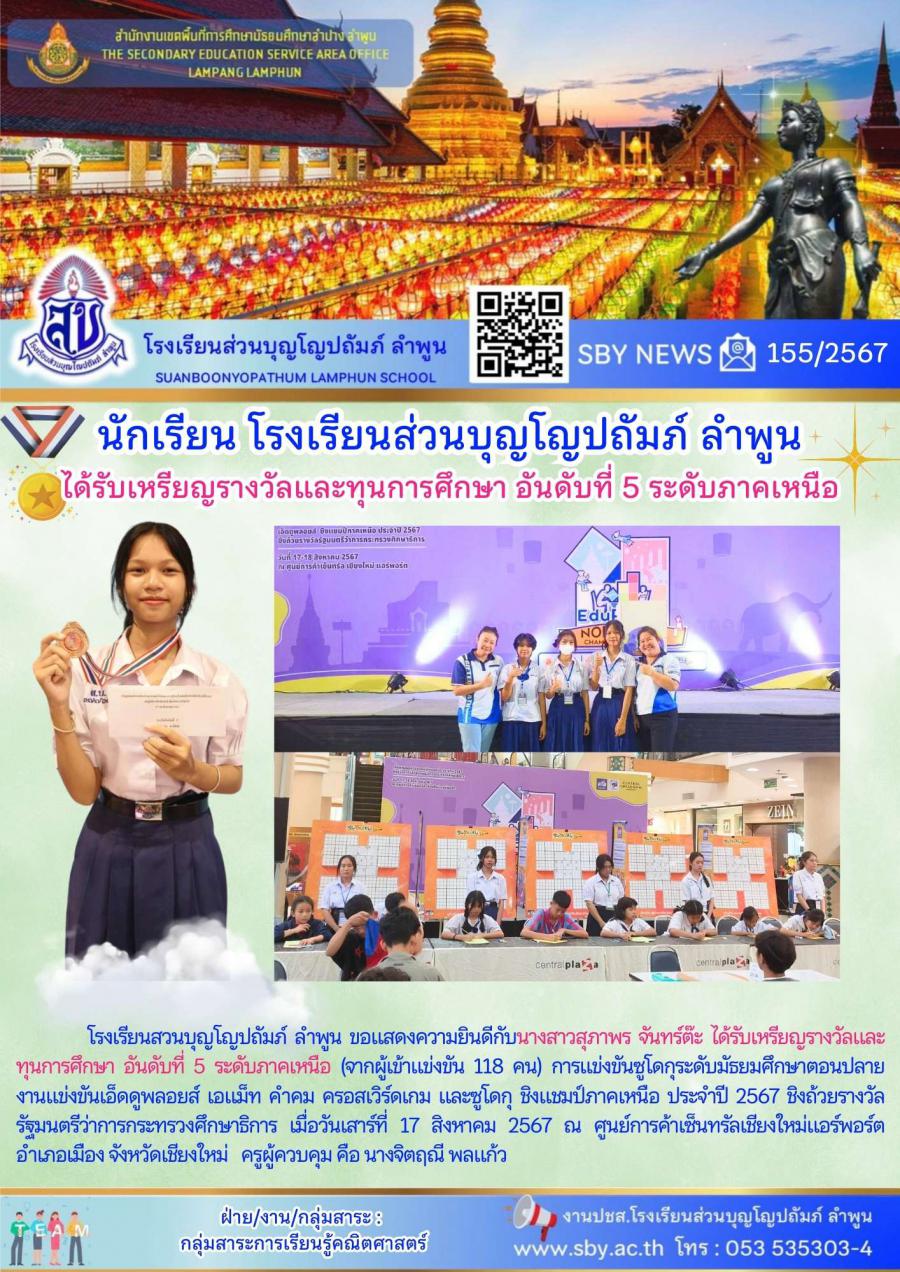 รับเหรียญรางวัลและทุนการศึกษา อันดับที่ 5 ระดับภาคเหนือ