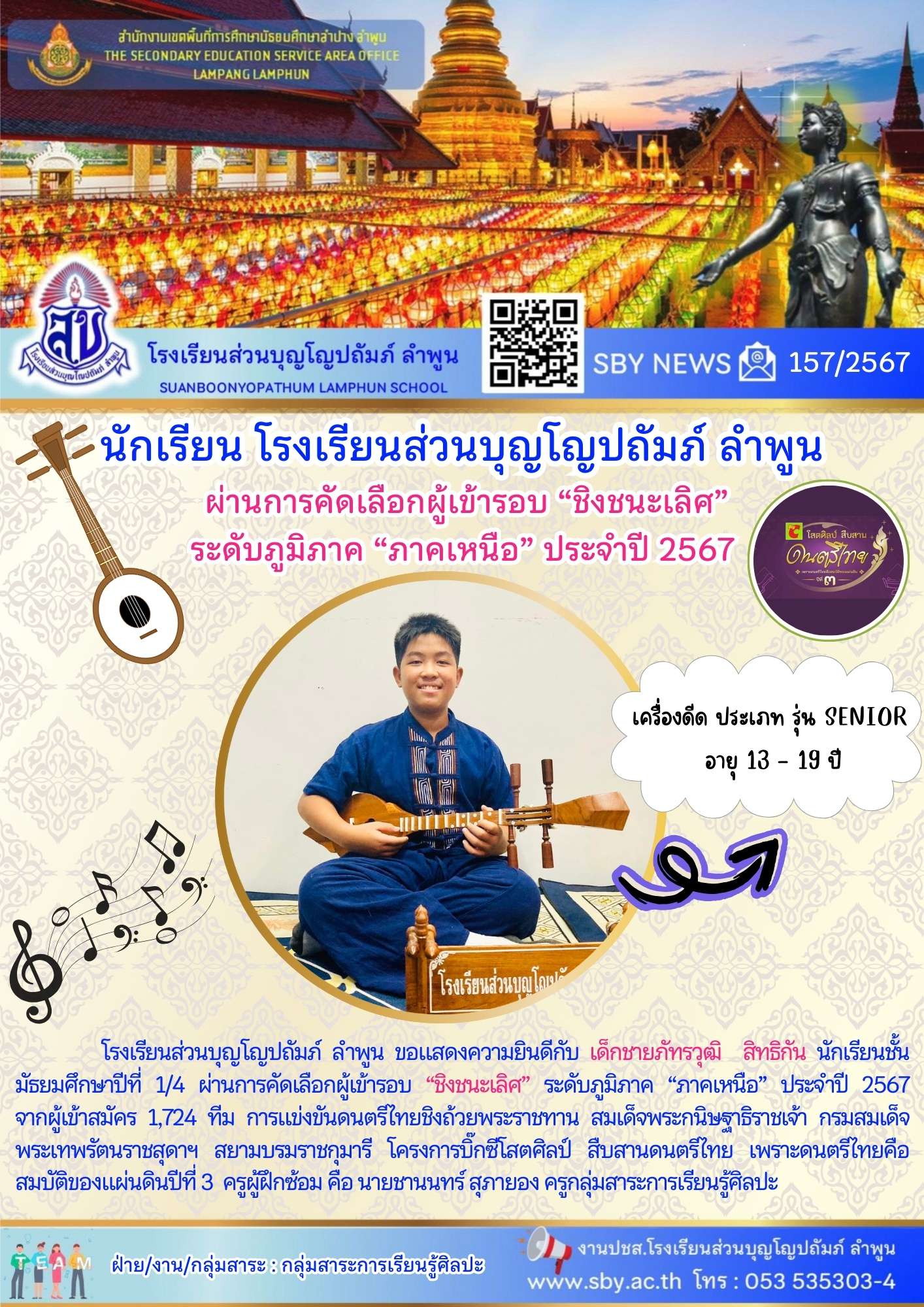 แสดงความยินดี นักเรียนผ่านการคัดเลือกผู้เข้ารอบ ชิงชนะเลิศ ระดับภูมิภาค ภาคเหนือ ประจำปี 2567